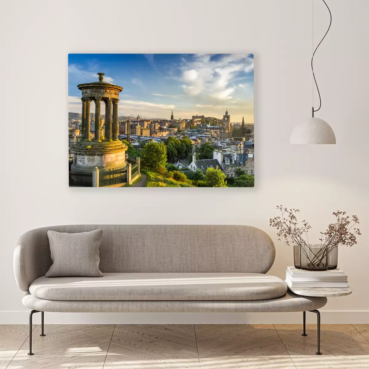 Canvas: Uitzicht op het kasteel van Calton Hill bij zonsondergang