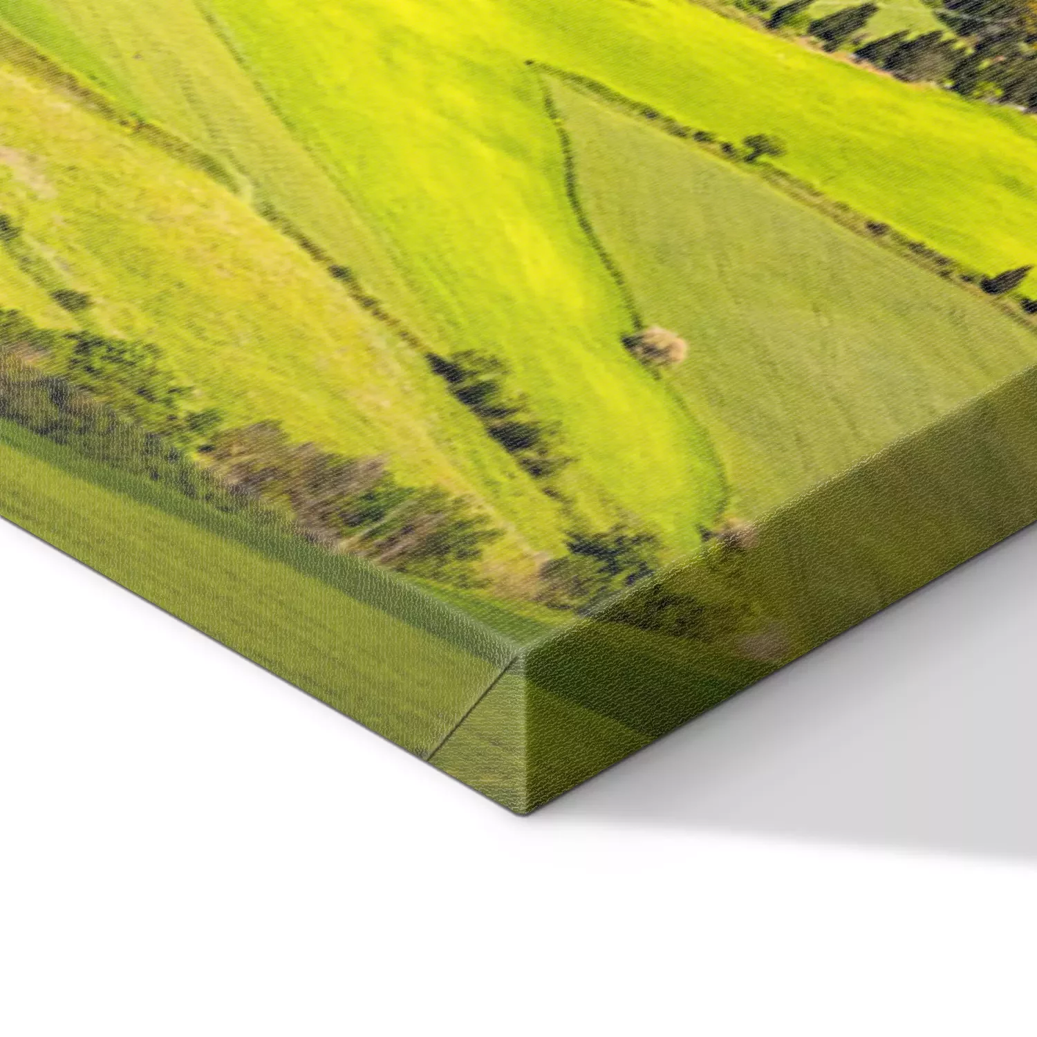 De print wordt aangebracht op hoogwaardig canvas dat op een schildersweefgetouw (spieraam) wordt gespannen. Omdat de print de zijranden bedekt, hoeft het ontwerp niet met een extra kader te worden omlijst. Wij raden ook composities aan die uit meerdere foto's bestaan en zo een coherente compositie vormen.