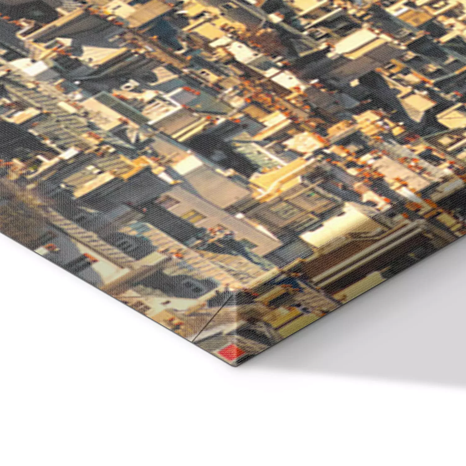 De print wordt aangebracht op hoogwaardig canvas dat op een schildersweefgetouw (spieraam) wordt gespannen. Omdat de print de zijranden bedekt, hoeft het ontwerp niet met een extra kader te worden omlijst. Wij raden ook composities aan die uit meerdere foto's bestaan en zo een coherente compositie vormen.
