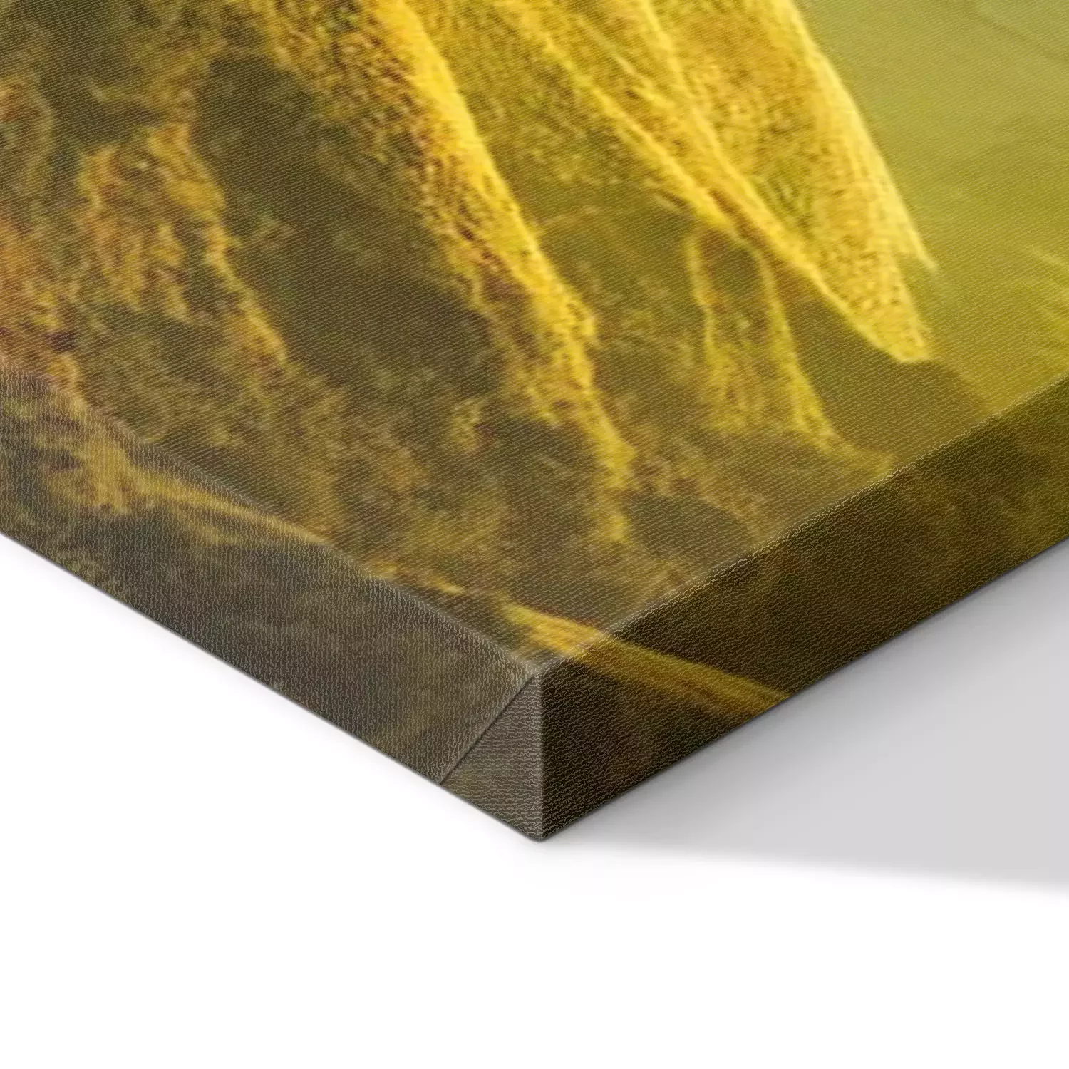 De print wordt aangebracht op hoogwaardig canvas dat op een schildersweefgetouw (spieraam) wordt gespannen. Omdat de print de zijranden bedekt, hoeft het ontwerp niet met een extra kader te worden omlijst. Wij raden ook composities aan die uit meerdere foto's bestaan en zo een coherente compositie vormen.