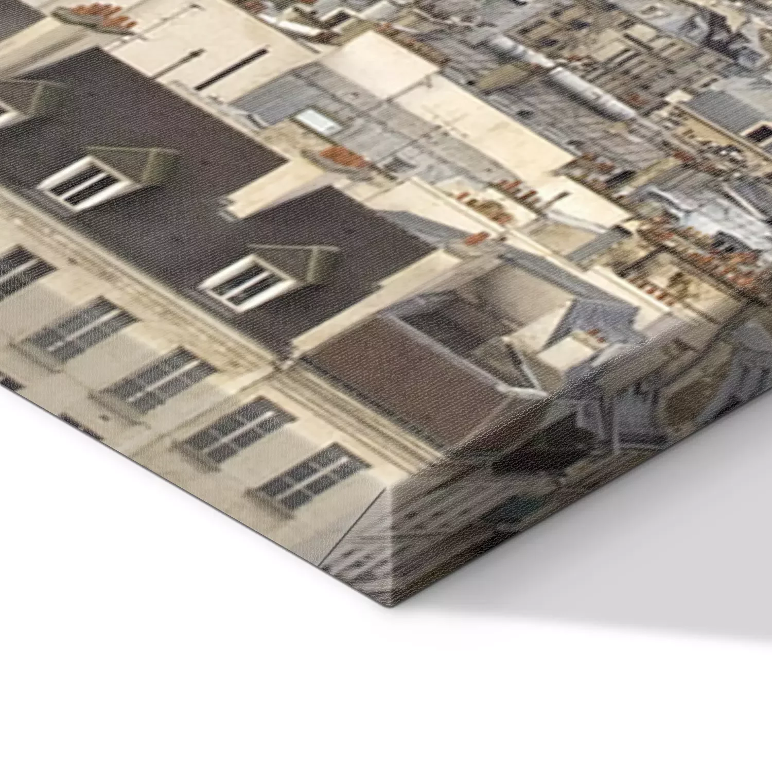 De print wordt aangebracht op hoogwaardig canvas dat op een schildersweefgetouw (spieraam) wordt gespannen. Omdat de print de zijranden bedekt, hoeft het ontwerp niet met een extra kader te worden omlijst. Wij raden ook composities aan die uit meerdere foto's bestaan en zo een coherente compositie vormen.