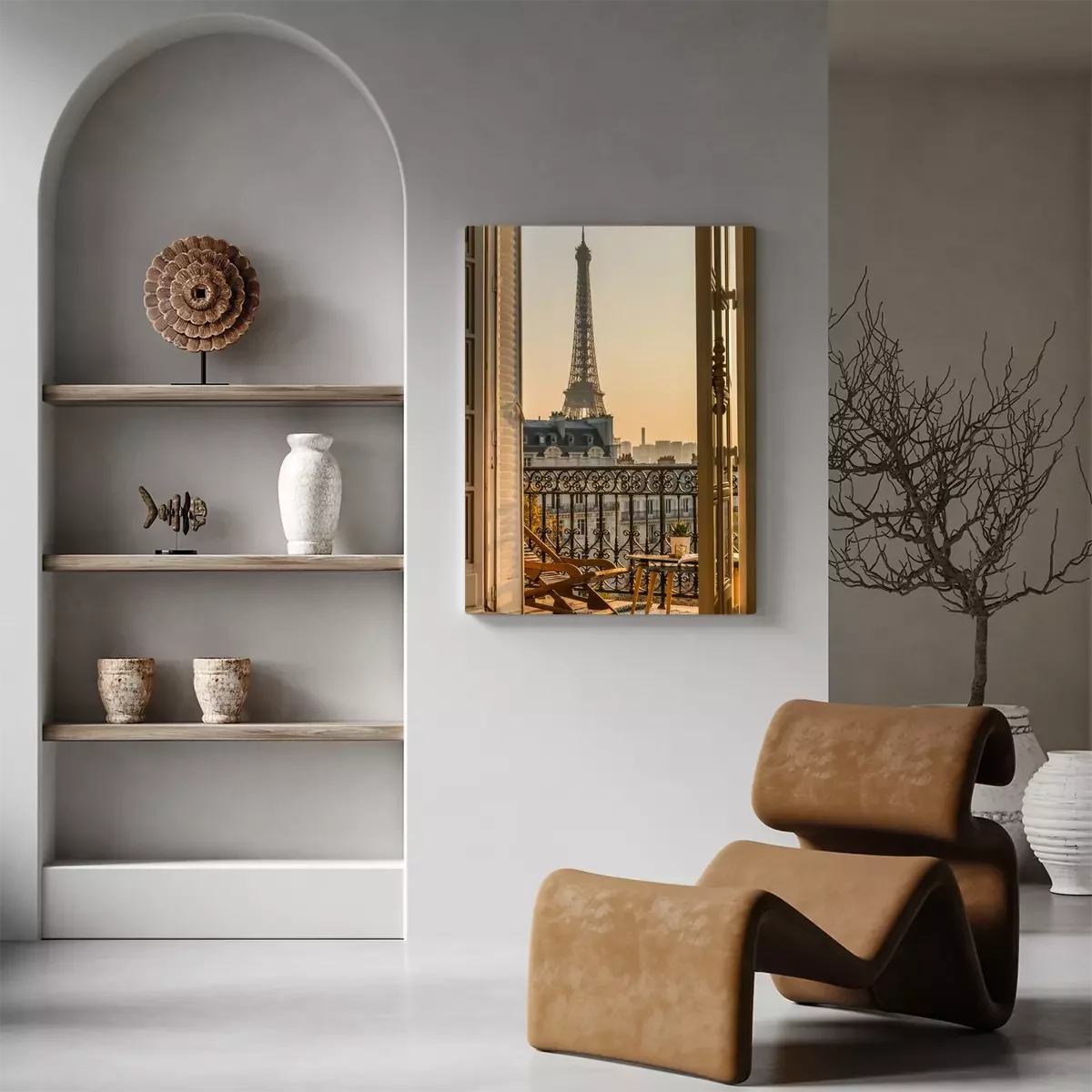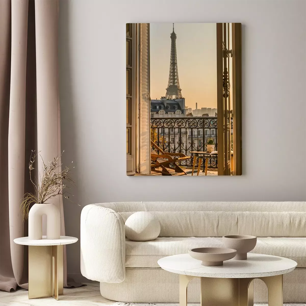 Canvas: Uitzicht vanuit het raam op de Eiffeltoren in Parijs
