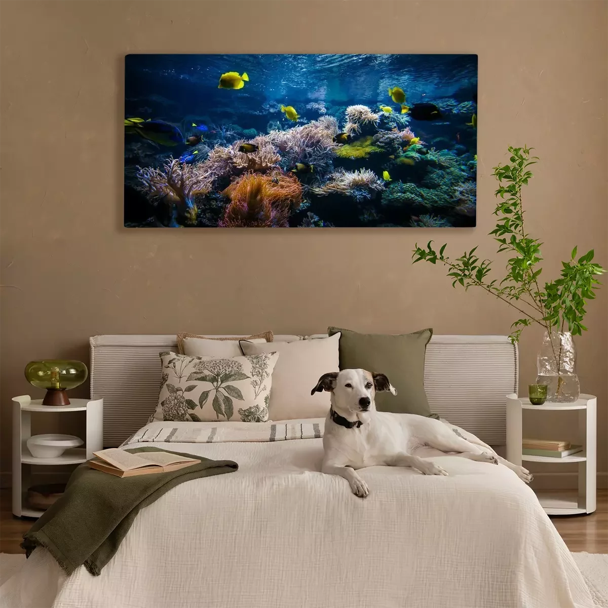 De print wordt aangebracht op hoogwaardig canvas dat op een schildersweefgetouw (spieraam) wordt gespannen. Omdat de print de zijranden bedekt, hoeft het ontwerp niet met een extra kader te worden omlijst. Wij raden ook composities aan die uit meerdere foto's bestaan en zo een coherente compositie vormen.