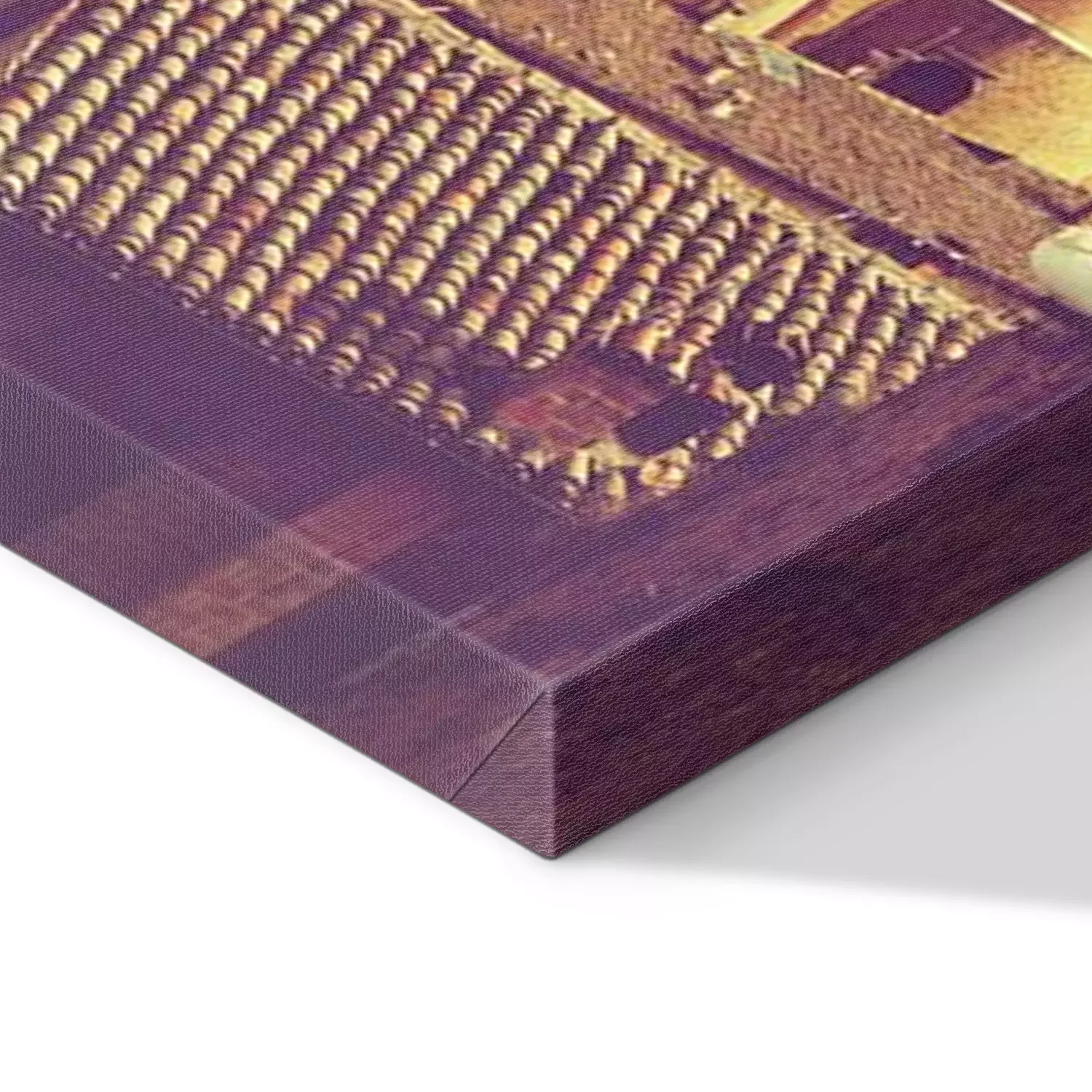De print wordt aangebracht op hoogwaardig canvas dat op een schildersweefgetouw (spieraam) wordt gespannen. Omdat de print de zijranden bedekt, hoeft het ontwerp niet met een extra kader te worden omlijst. Wij raden ook composities aan die uit meerdere foto's bestaan en zo een coherente compositie vormen.