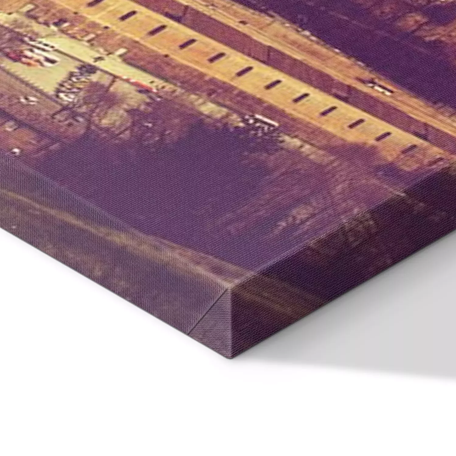 De print wordt aangebracht op hoogwaardig canvas dat op een schildersweefgetouw (spieraam) wordt gespannen. Omdat de print de zijranden bedekt, hoeft het ontwerp niet met een extra kader te worden omlijst. Wij raden ook composities aan die uit meerdere foto's bestaan en zo een coherente compositie vormen.
