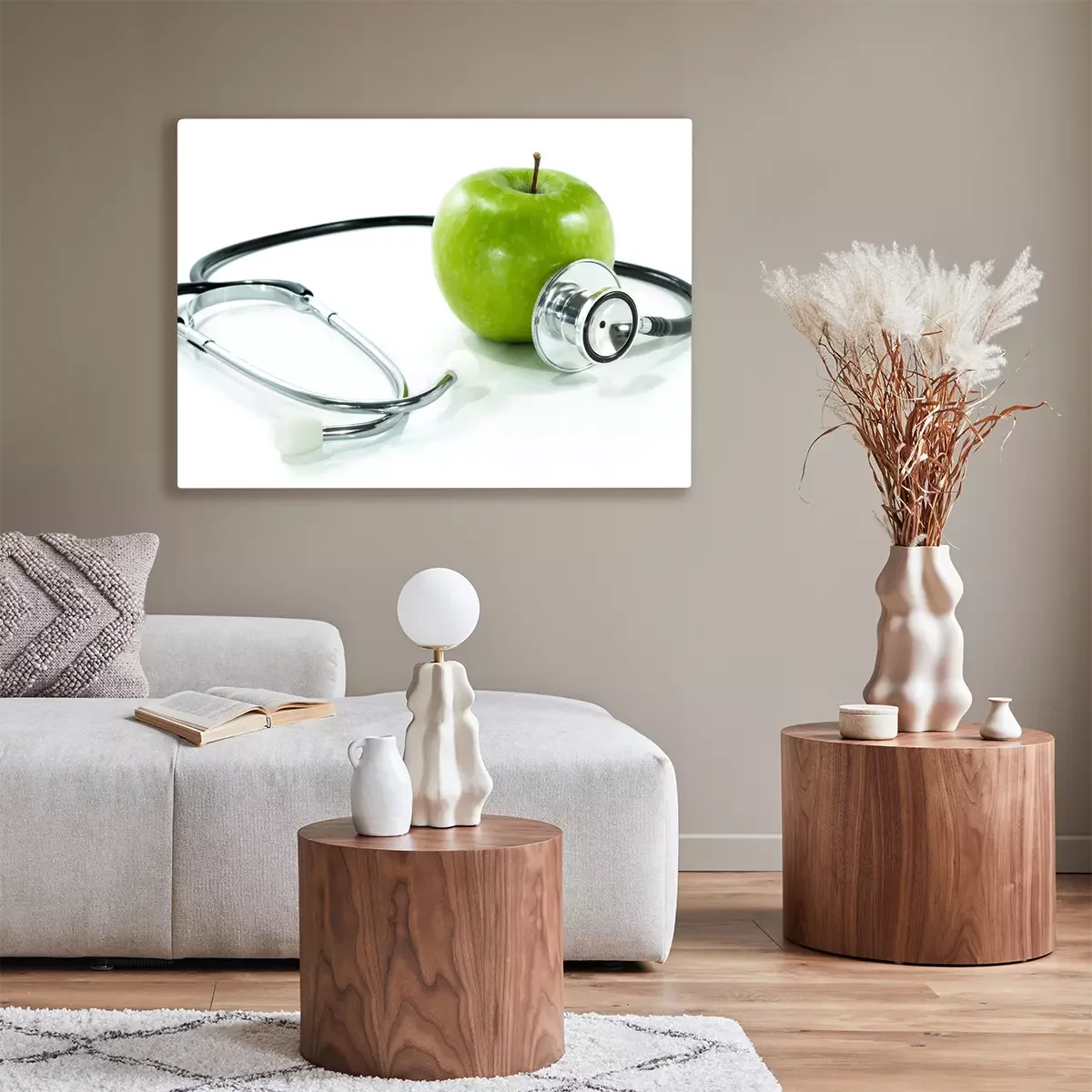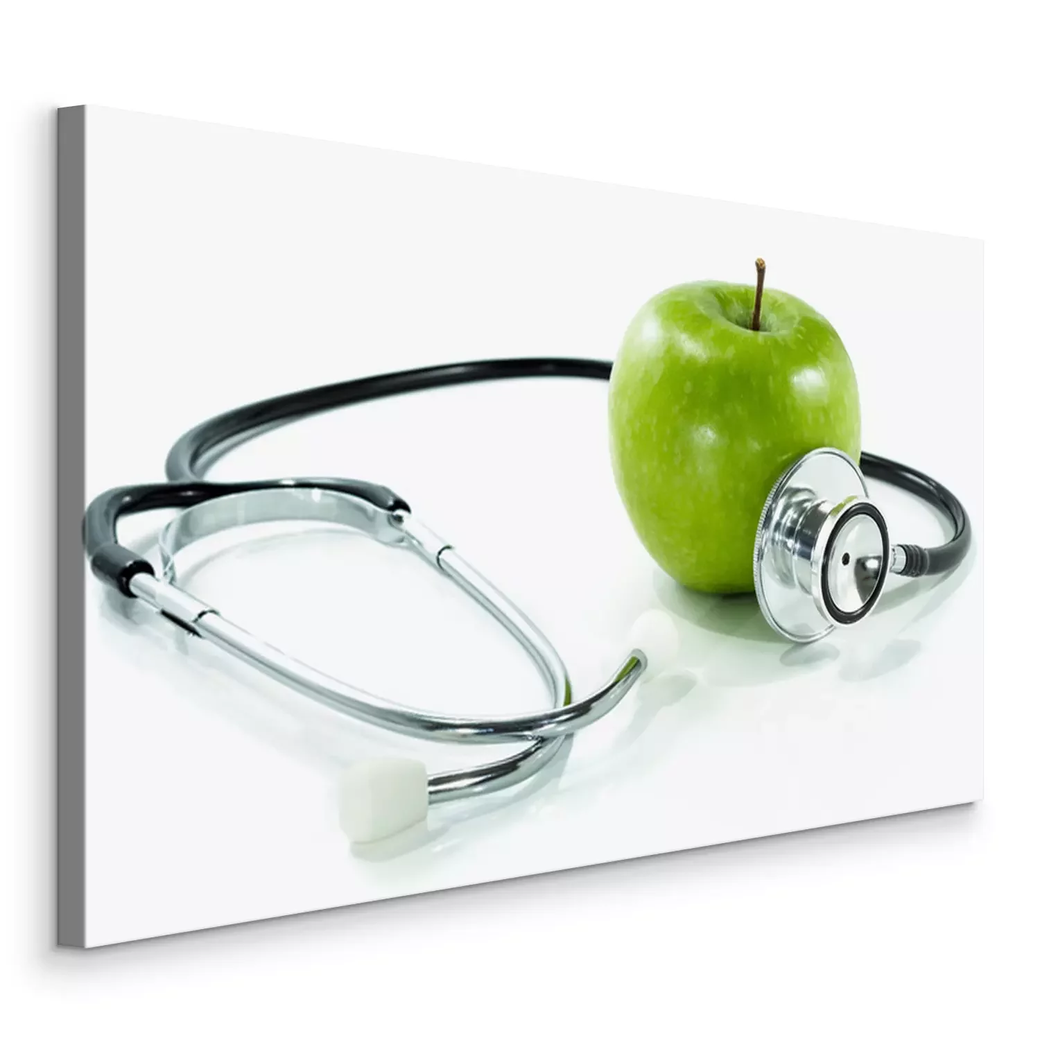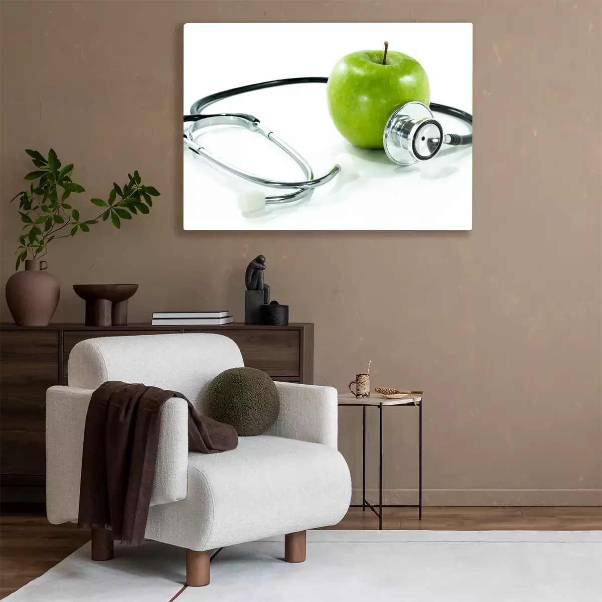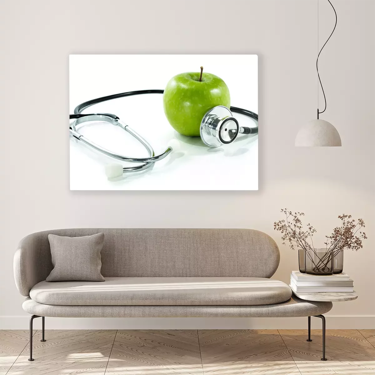 Canvas uw gezondheid te beschermen met gezonde nutrition.Stethoscope, appel
