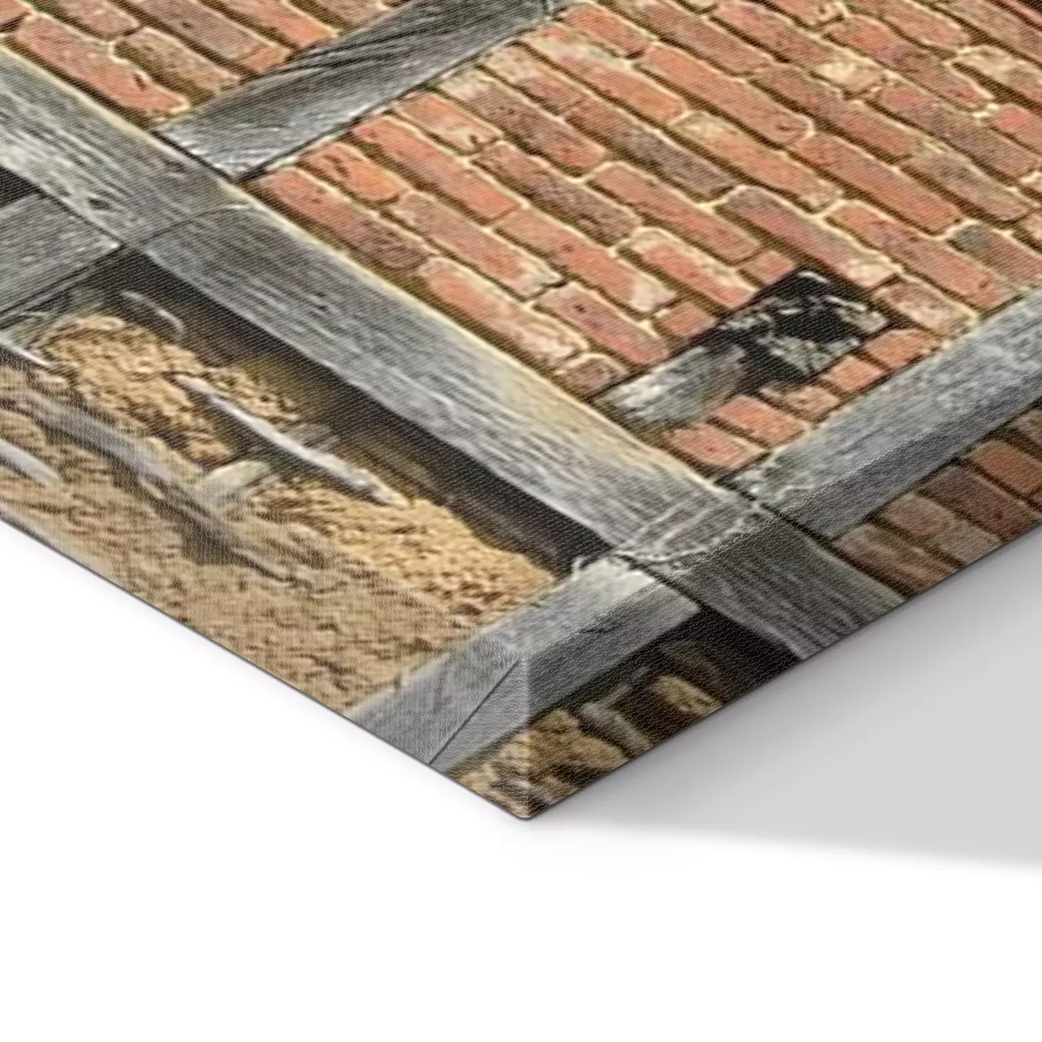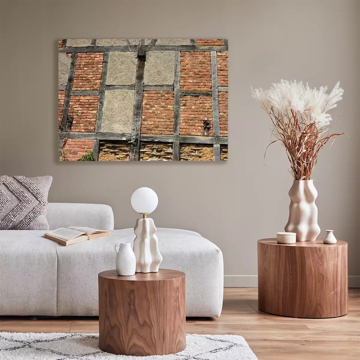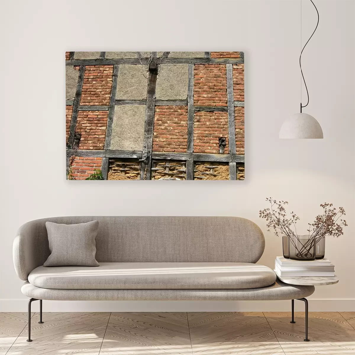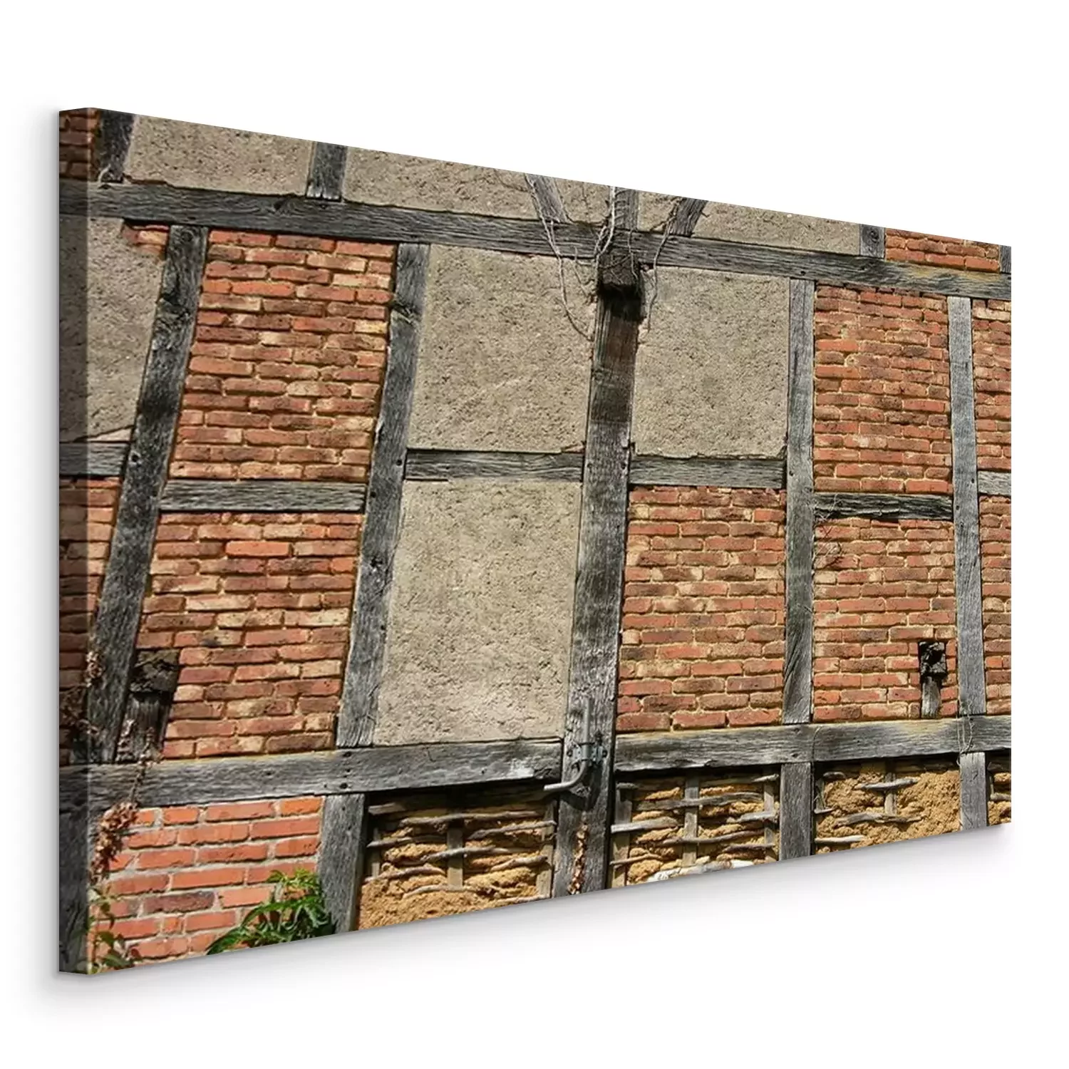 Canvas: Vakwerkconstructie met balken en bakstenen muren