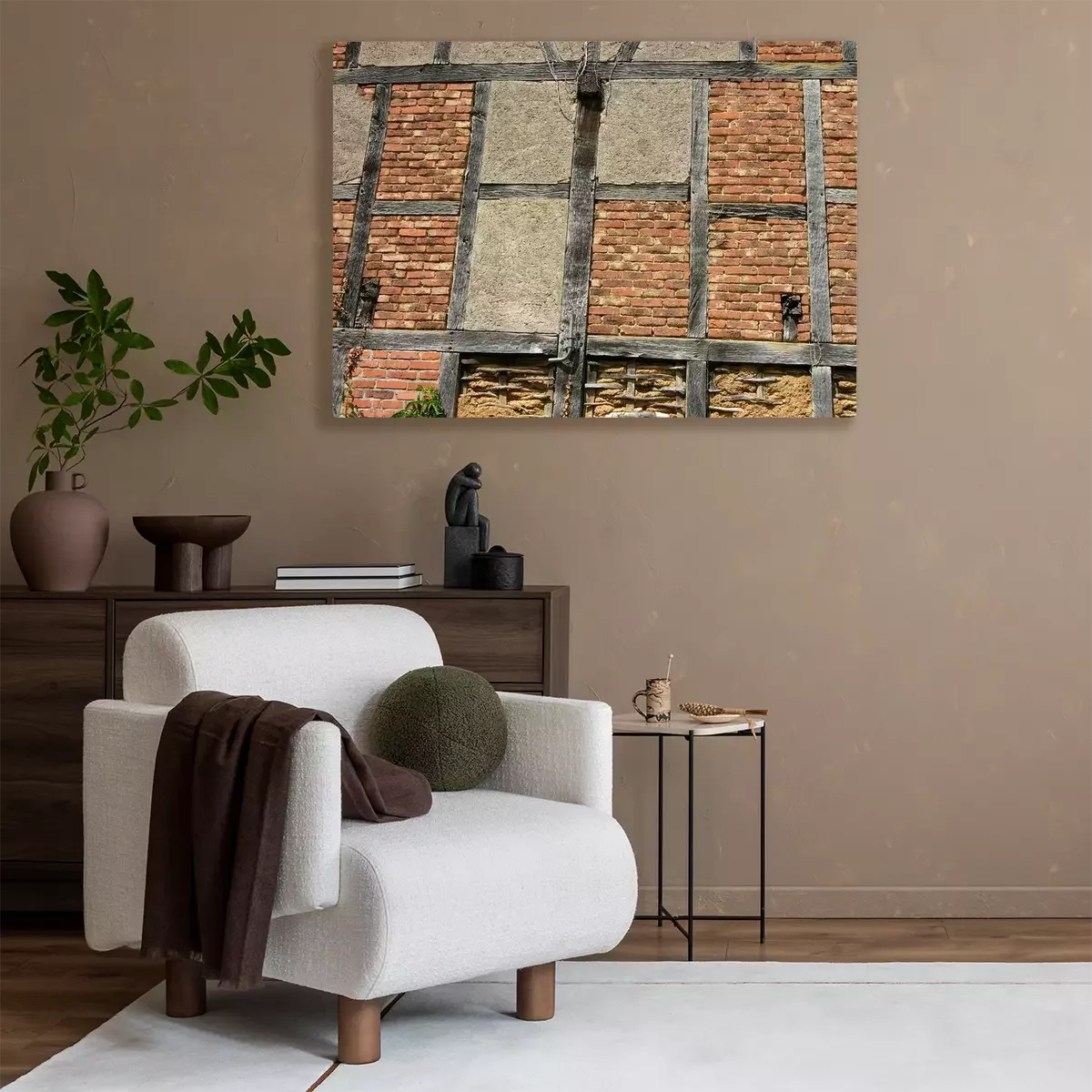 Canvas Vakwerkconstructie met balken en bakstenen muren