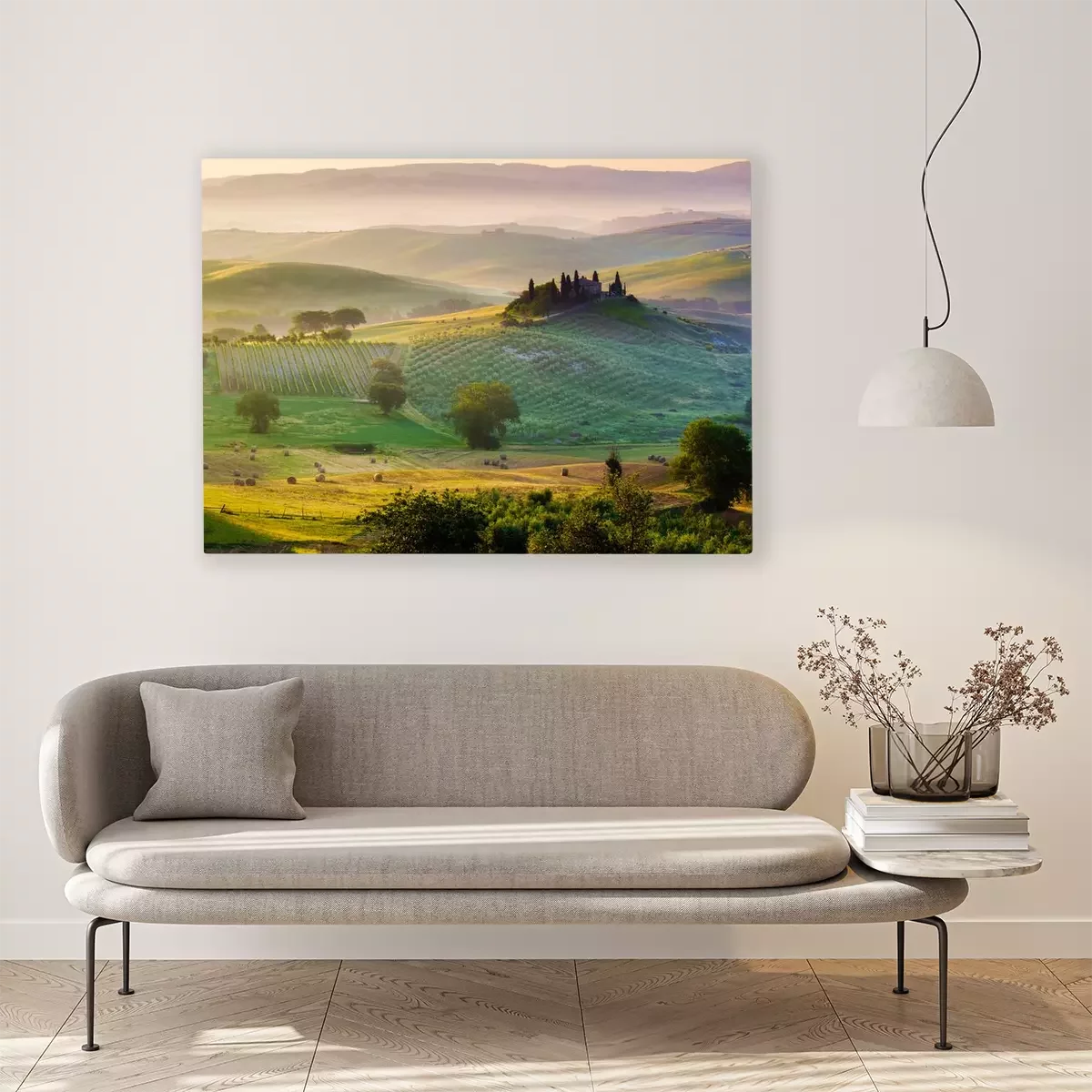De print wordt aangebracht op hoogwaardig canvas dat op een schildersweefgetouw (spieraam) wordt gespannen. Omdat de print de zijranden bedekt, hoeft het ontwerp niet met een extra kader te worden omlijst. Wij raden ook composities aan die uit meerdere foto's bestaan en zo een coherente compositie vormen.