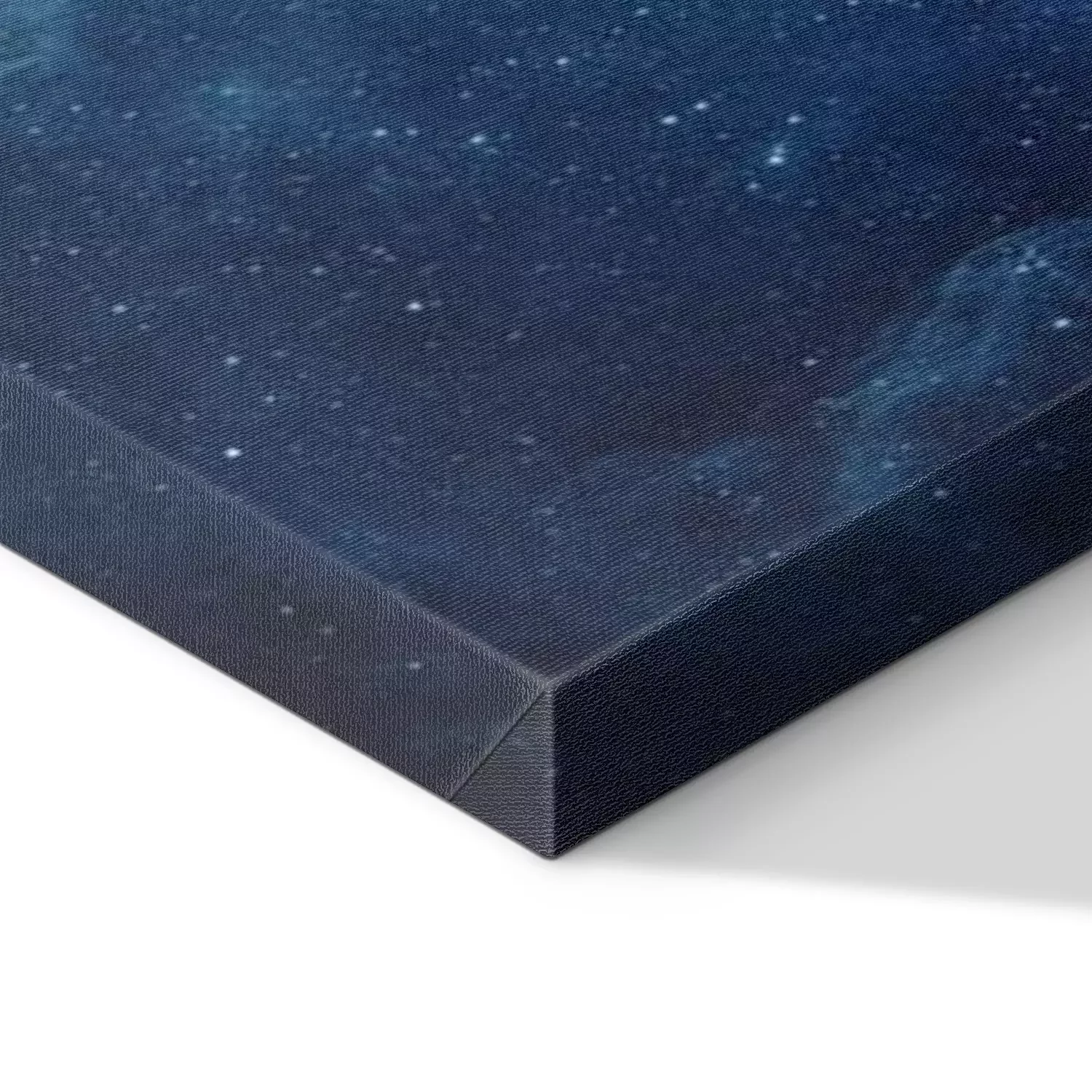 De print wordt aangebracht op hoogwaardig canvas dat op een schildersweefgetouw (spieraam) wordt gespannen. Omdat de print de zijranden bedekt, hoeft het ontwerp niet met een extra kader te worden omlijst. Wij raden ook composities aan die uit meerdere foto's bestaan en zo een coherente compositie vormen.
