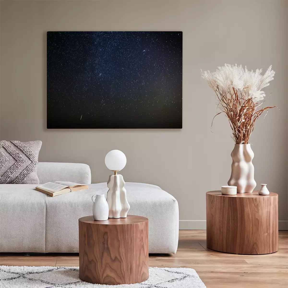 De print wordt aangebracht op hoogwaardig canvas dat op een schildersweefgetouw (spieraam) wordt gespannen. Omdat de print de zijranden bedekt, hoeft het ontwerp niet met een extra kader te worden omlijst. Wij raden ook composities aan die uit meerdere foto's bestaan en zo een coherente compositie vormen.