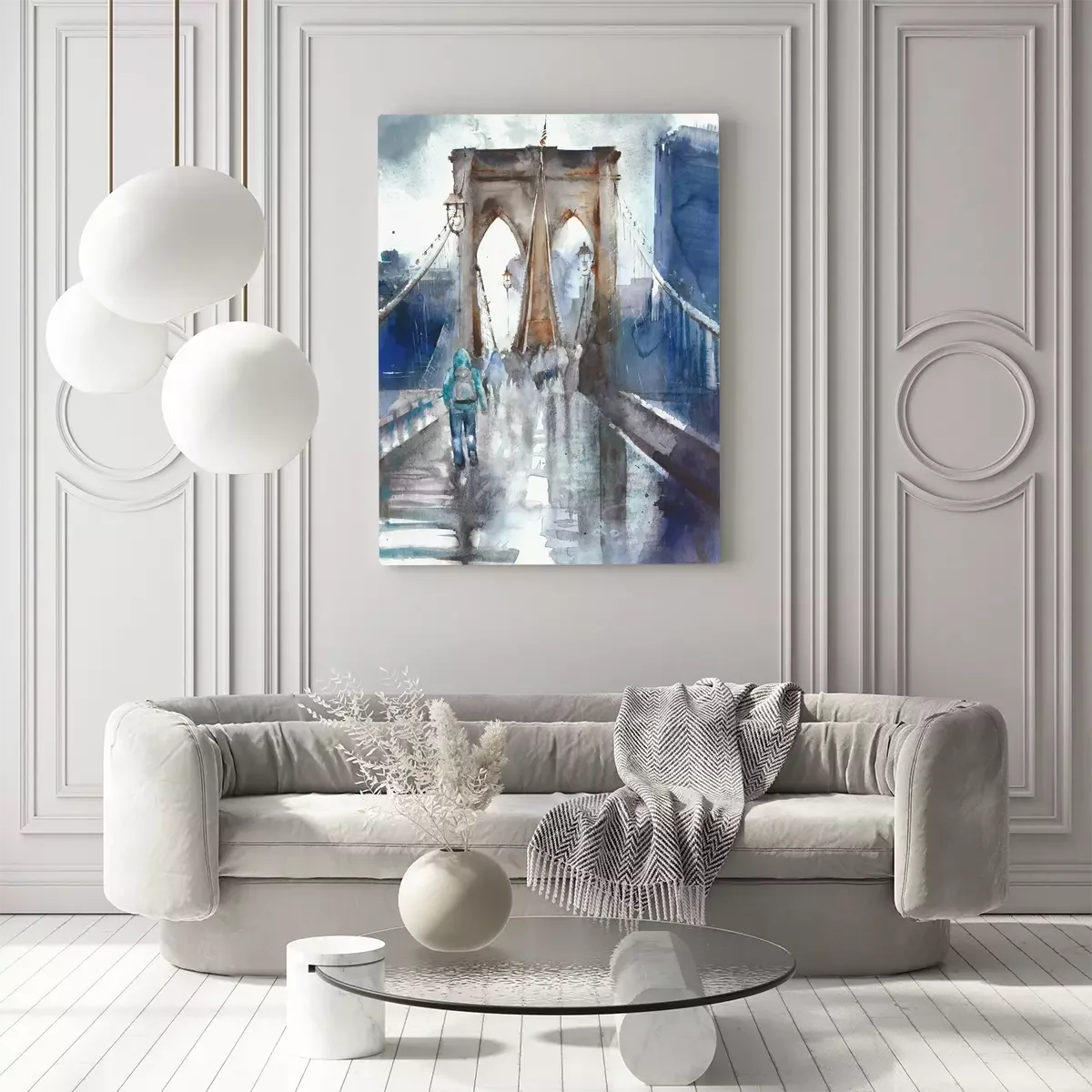 Canvas Van de de architectuur het oriëntatiepunt van de brugnthc van Brooklyn van de de plaatsvakantie van de het ontwerpvakantie de waterverfillustratie schilderen