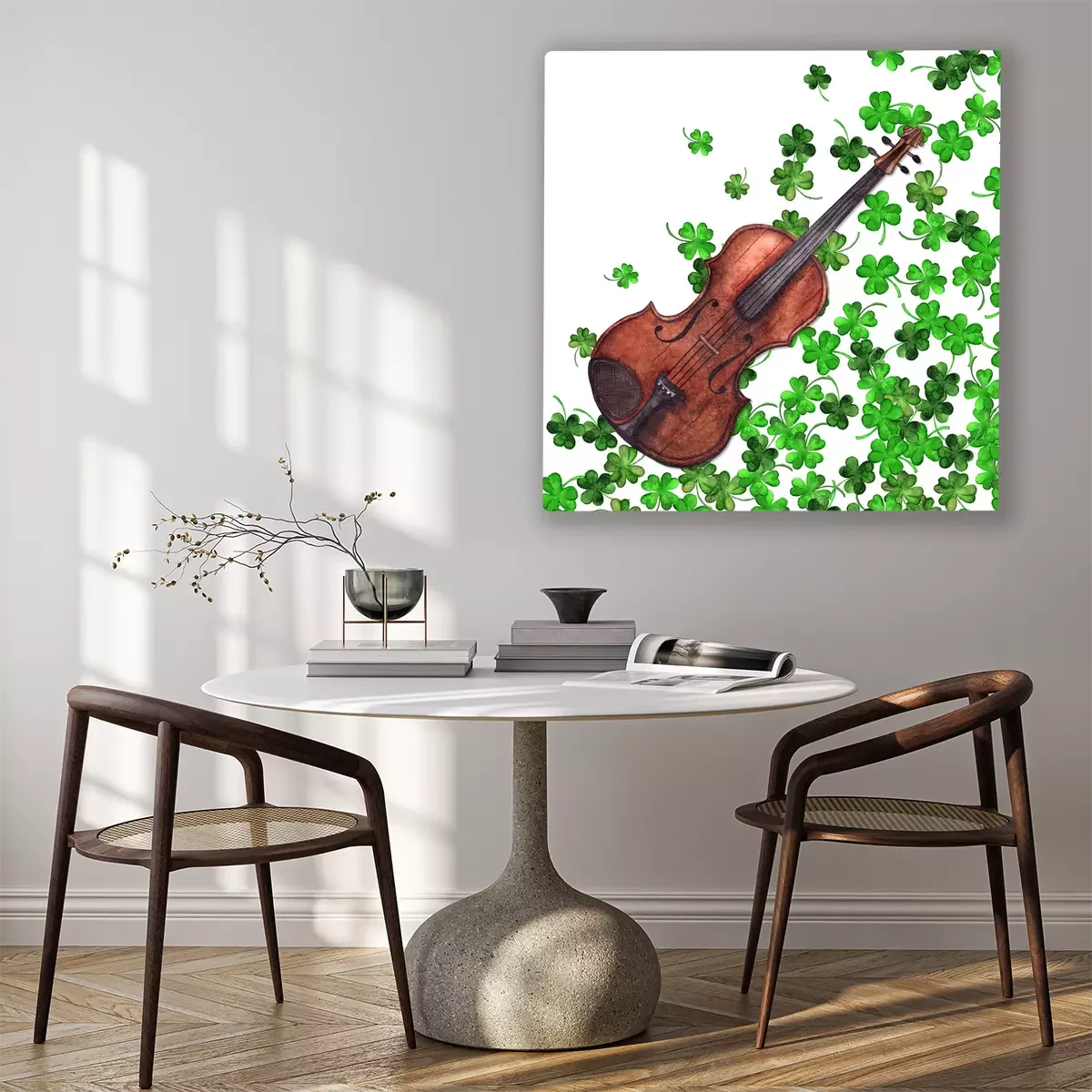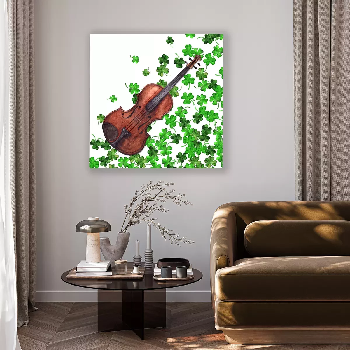 Canvas: Van de de vioolmuzikaal instrument van de waterverf houten uitstekende viool fiddle klaver van het de bladinstallatie het patroonachtergrond