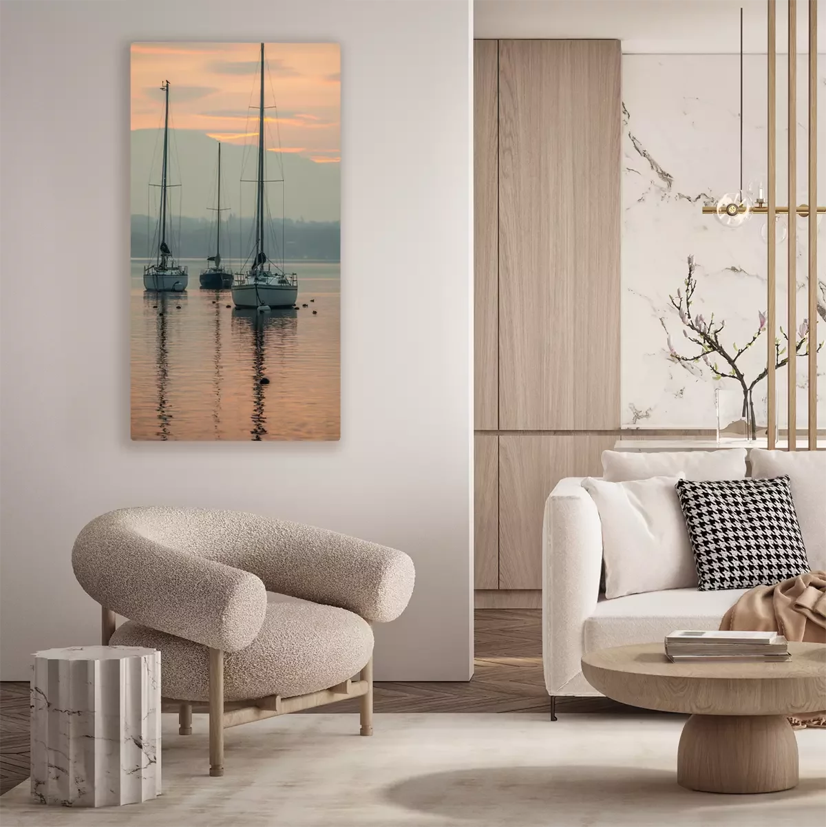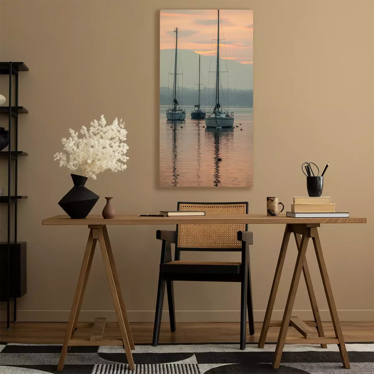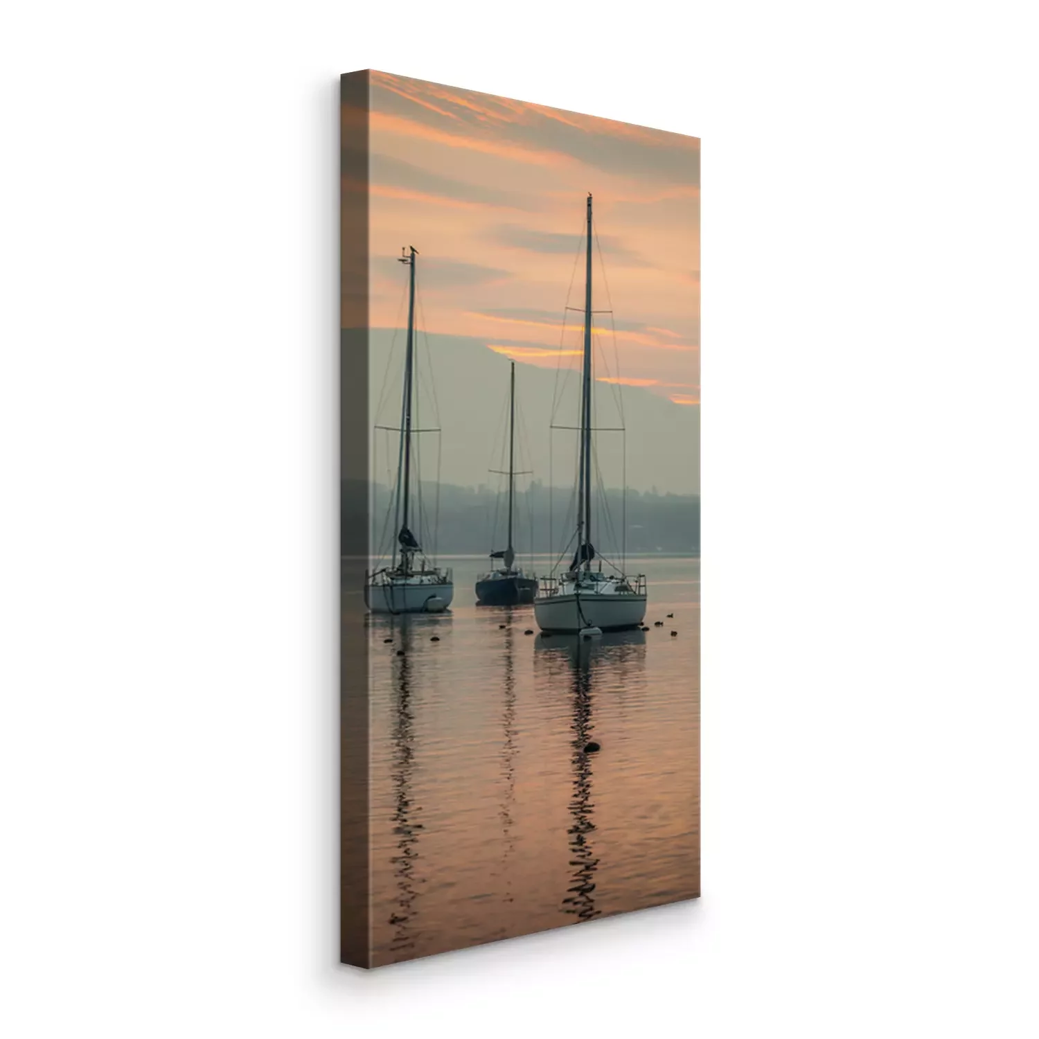 Canvas: Varende schepen in de stralen van de ondergaande zon
