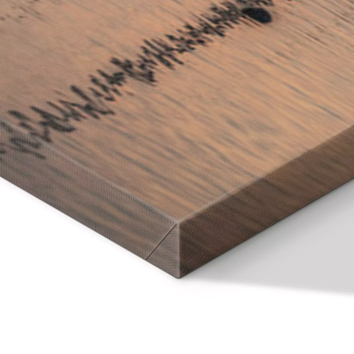 De print wordt aangebracht op hoogwaardig canvas dat op een schildersweefgetouw (spieraam) wordt gespannen. Omdat de print de zijranden bedekt, hoeft het ontwerp niet met een extra kader te worden omlijst. Wij raden ook composities aan die uit meerdere foto's bestaan en zo een coherente compositie vormen.