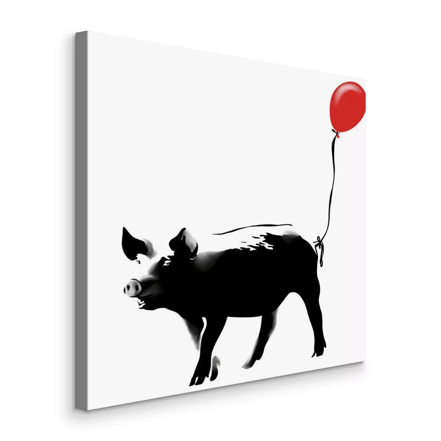 Canvas Varken met rode ballon in Banksy stijl