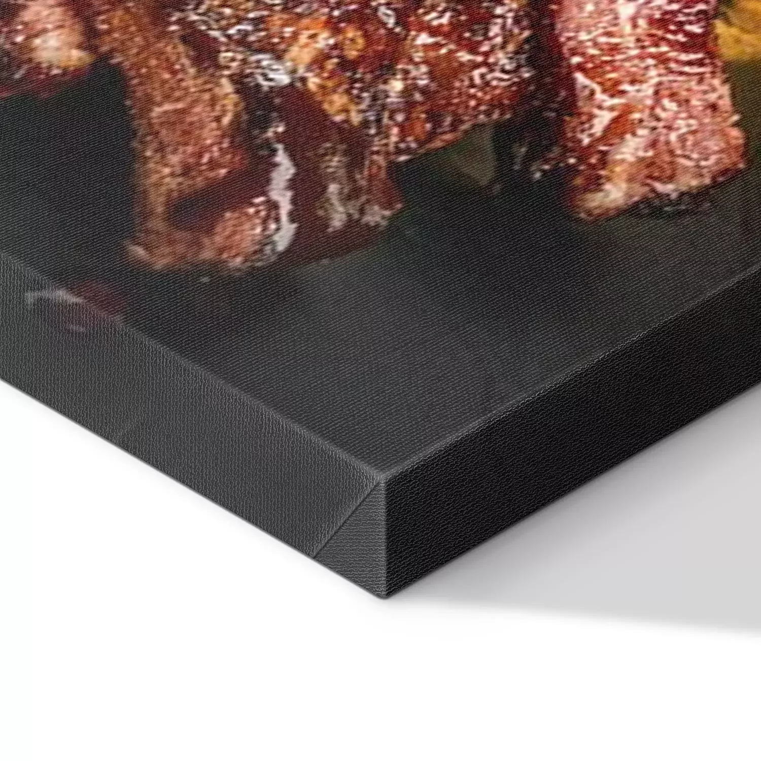De print wordt aangebracht op hoogwaardig canvas dat op een schildersweefgetouw (spieraam) wordt gespannen. Omdat de print de zijranden bedekt, hoeft het ontwerp niet met een extra kader te worden omlijst. Wij raden ook composities aan die uit meerdere foto's bestaan en zo een coherente compositie vormen.