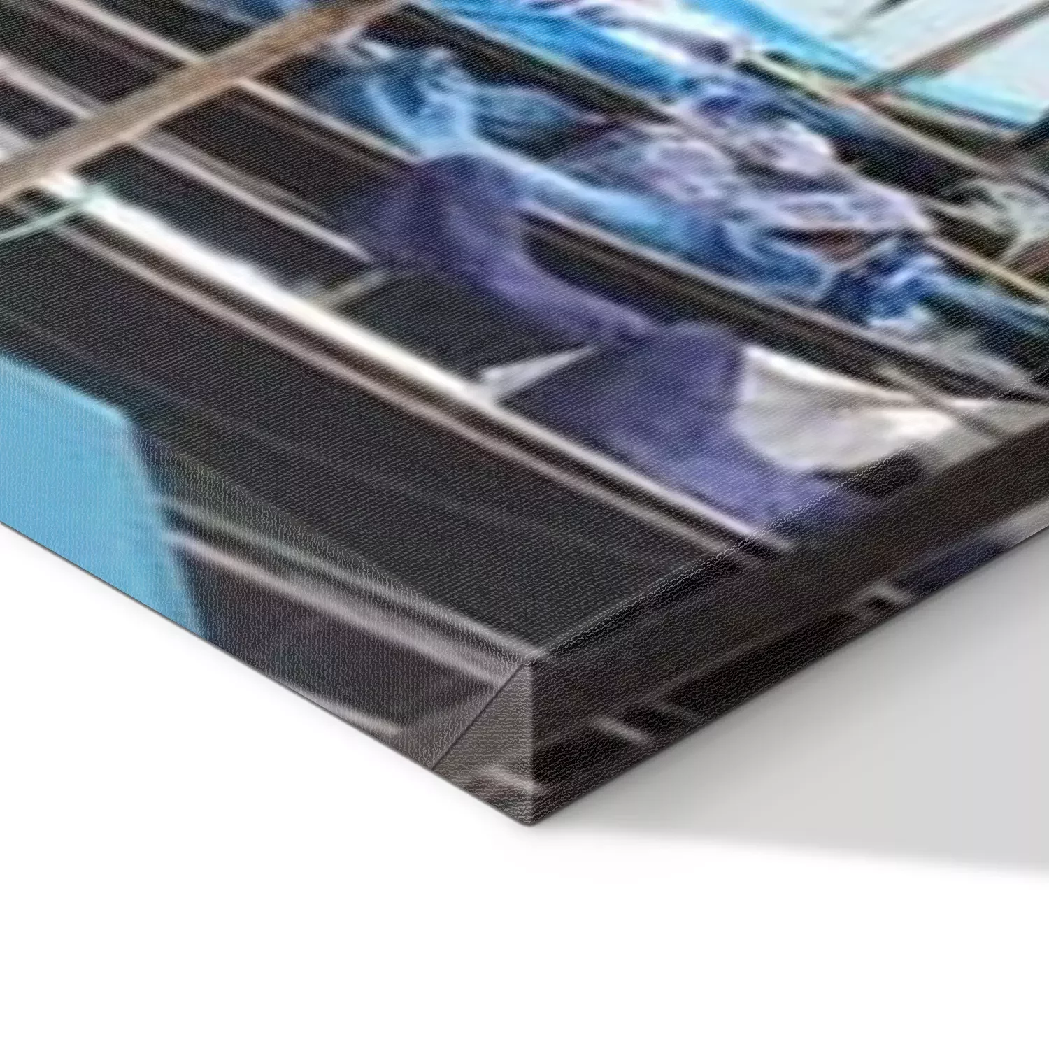 De print wordt aangebracht op hoogwaardig canvas dat op een schildersweefgetouw (spieraam) wordt gespannen. Omdat de print de zijranden bedekt, hoeft het ontwerp niet met een extra kader te worden omlijst. Wij raden ook composities aan die uit meerdere foto's bestaan en zo een coherente compositie vormen.