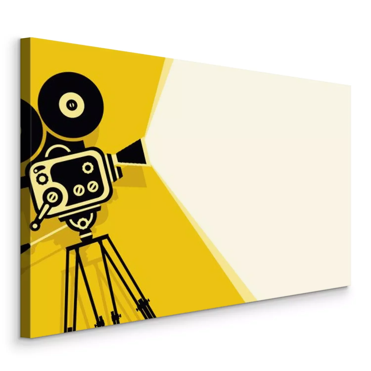 Canvas Vector gele achtergrond met het aansteken van ouderwetse filmcamera op het statief. Kan worden gebruikt voor banner, poster, webpagina, achtergrond