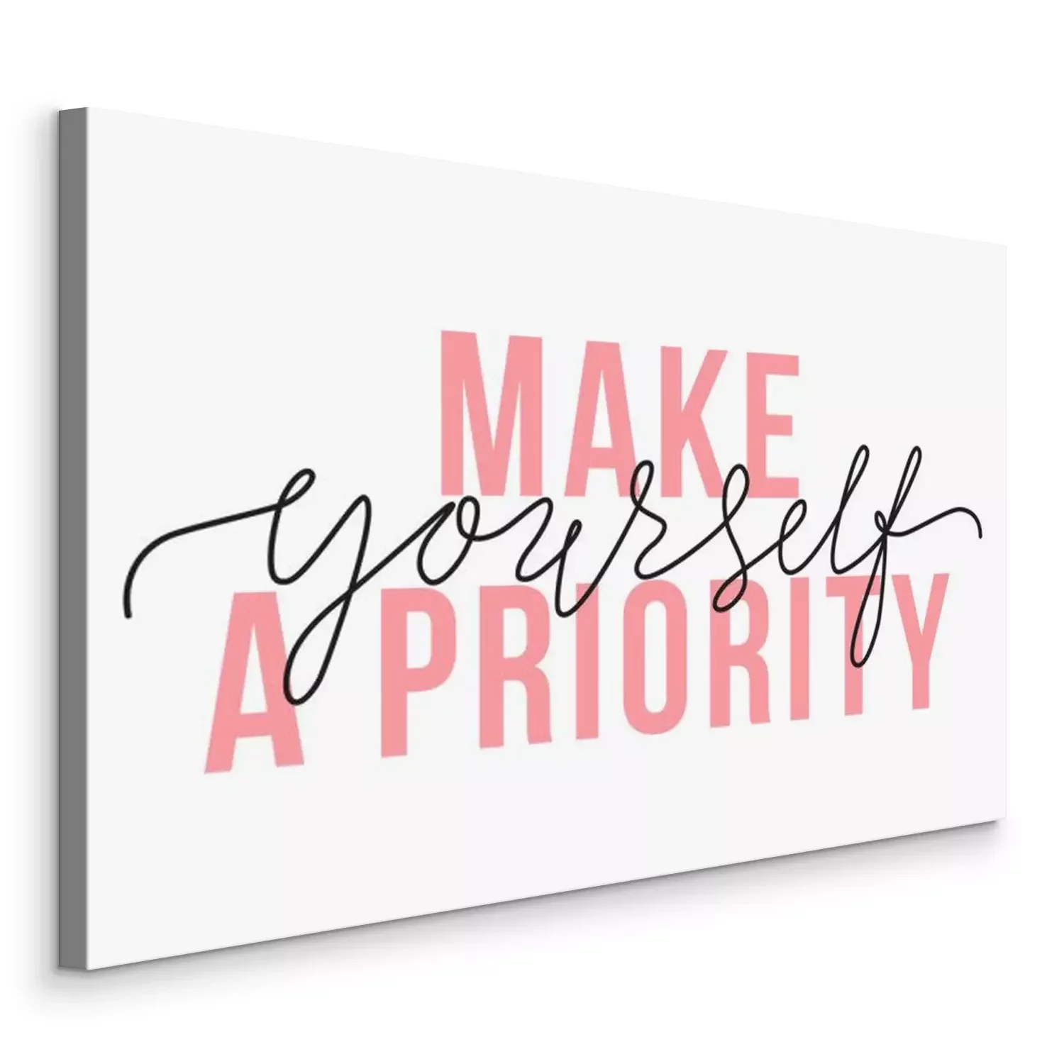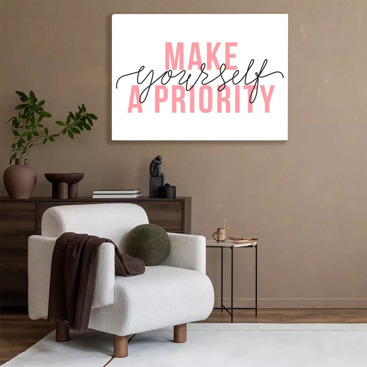 Canvas: Vector illustration of Make Yourself a Priority lettering quote. Self-care and body positive trendy concept. Modern calligraphy text design print for fashion, t shirt, label, badge, sticker, banner