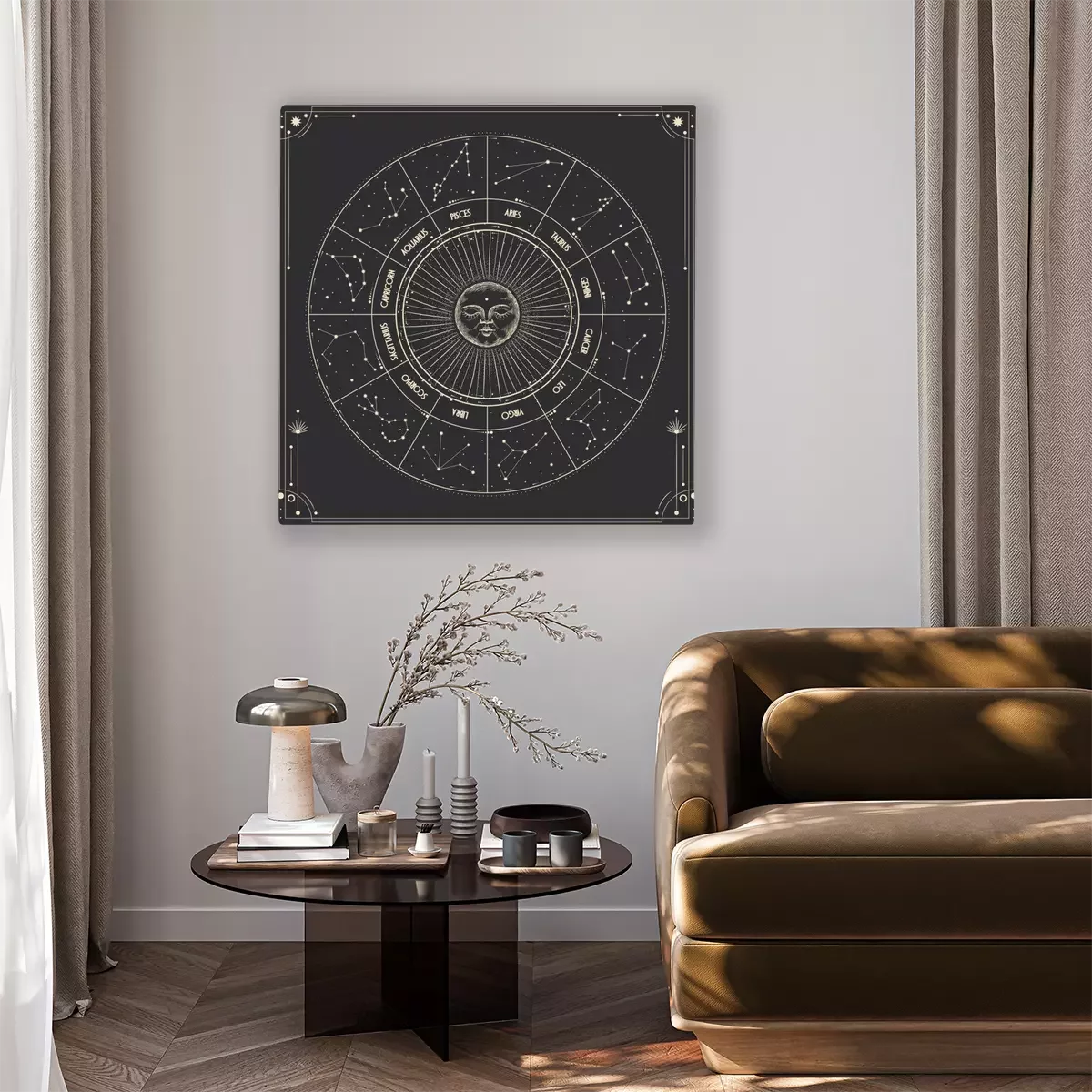 Canvas: Vector illustration set of moon phases. Different stages of moonlight activity in vintage engraving style. Zodiac Signs