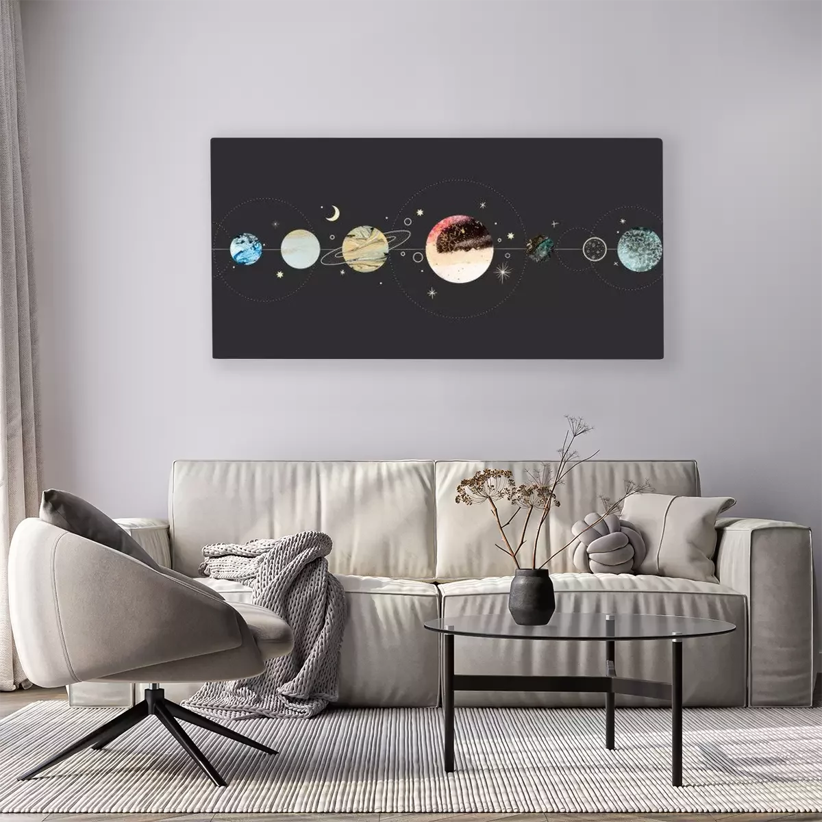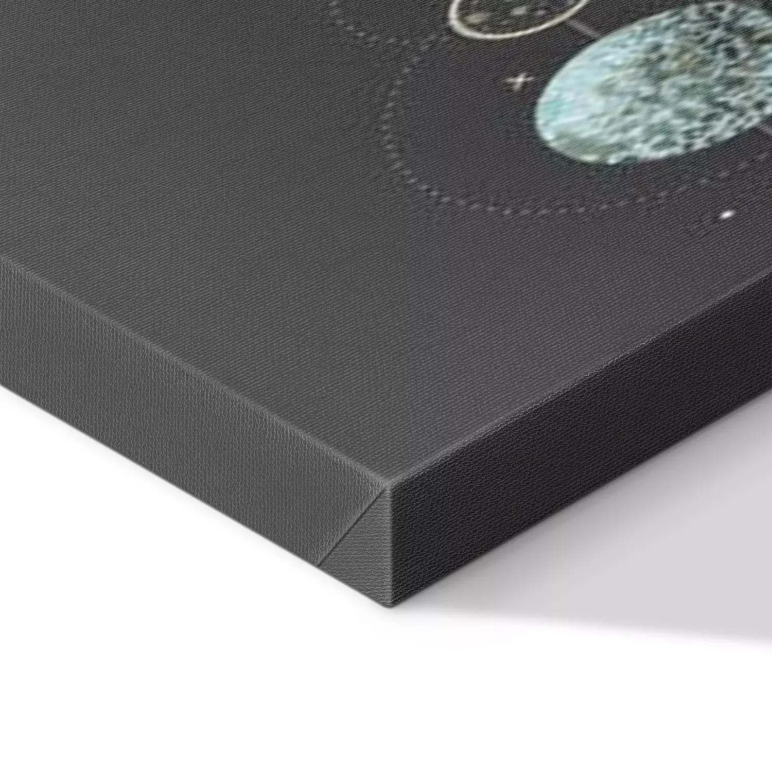 De print wordt aangebracht op hoogwaardig canvas dat op een schildersweefgetouw (spieraam) wordt gespannen. Omdat de print de zijranden bedekt, hoeft het ontwerp niet met een extra kader te worden omlijst. Wij raden ook composities aan die uit meerdere foto's bestaan en zo een coherente compositie vormen.