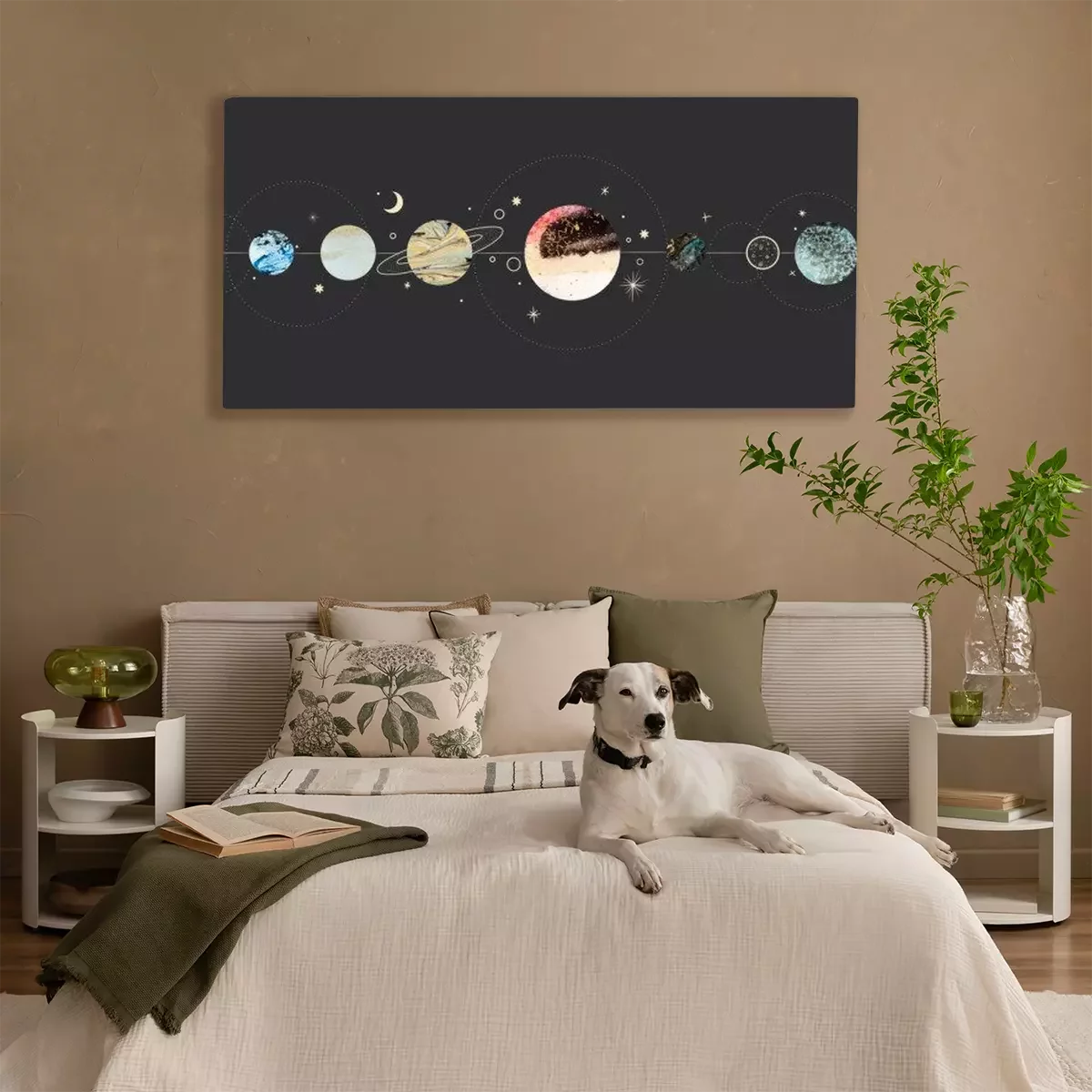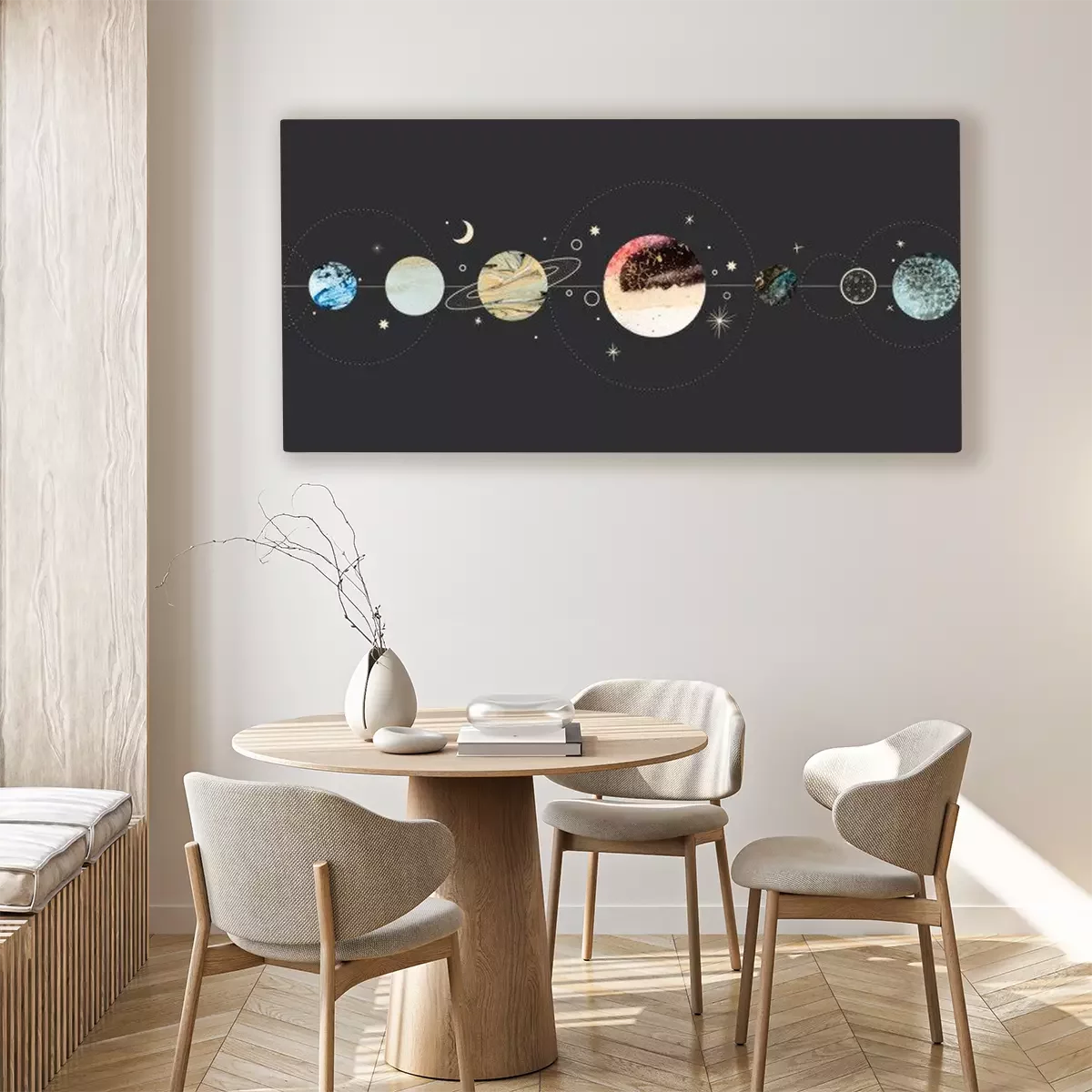 Canvas Vector illustration set of moon phases. Different stages of moonlight activity in vintage engraving style. Zodiac Signs