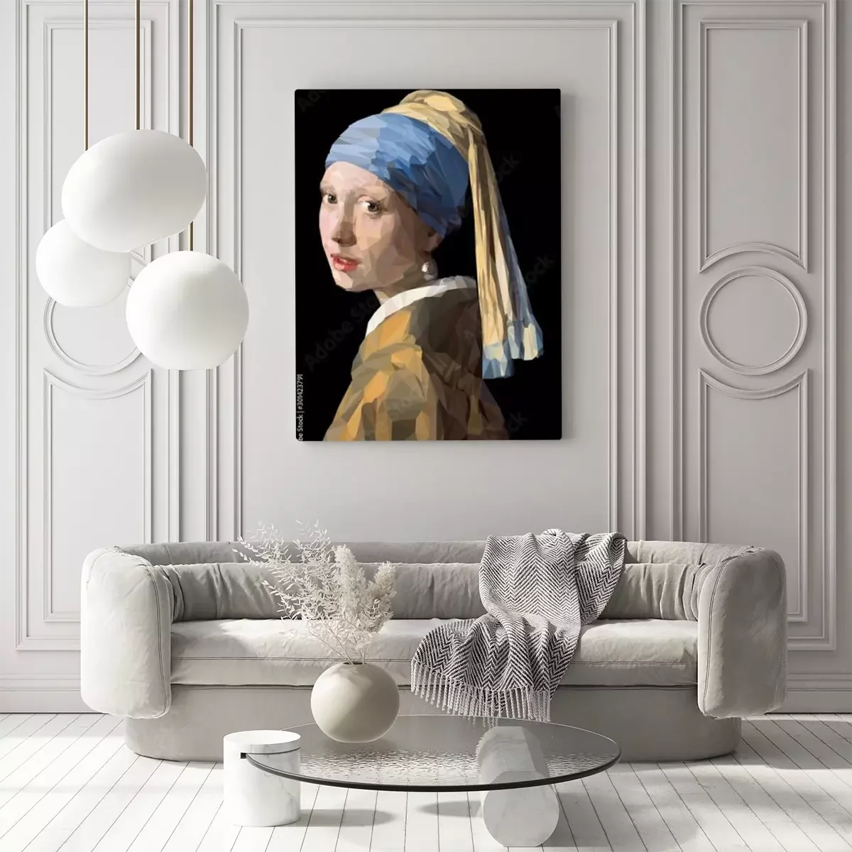 Canvas Vector LowPoly Reproduction of Girl with a Pearl Earring