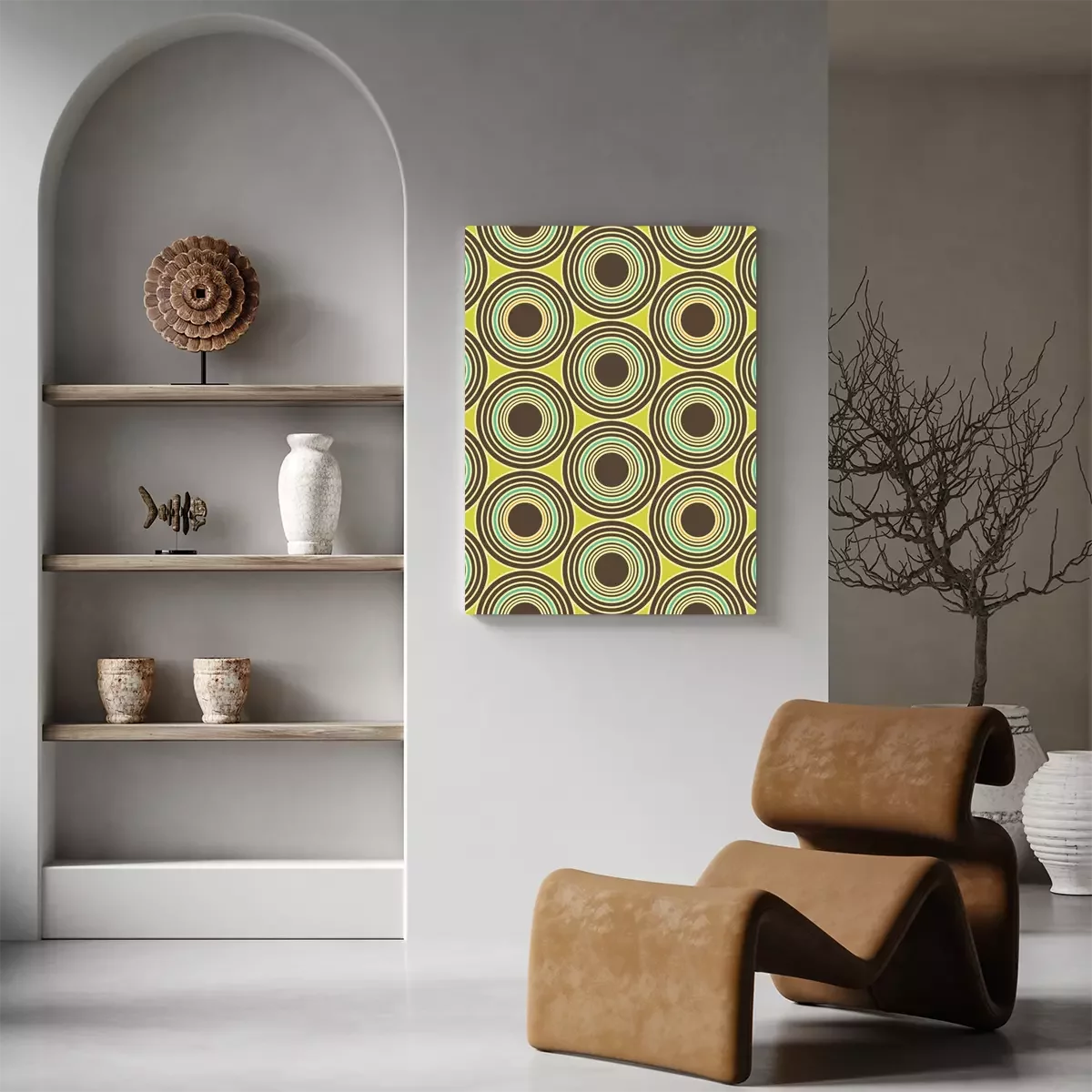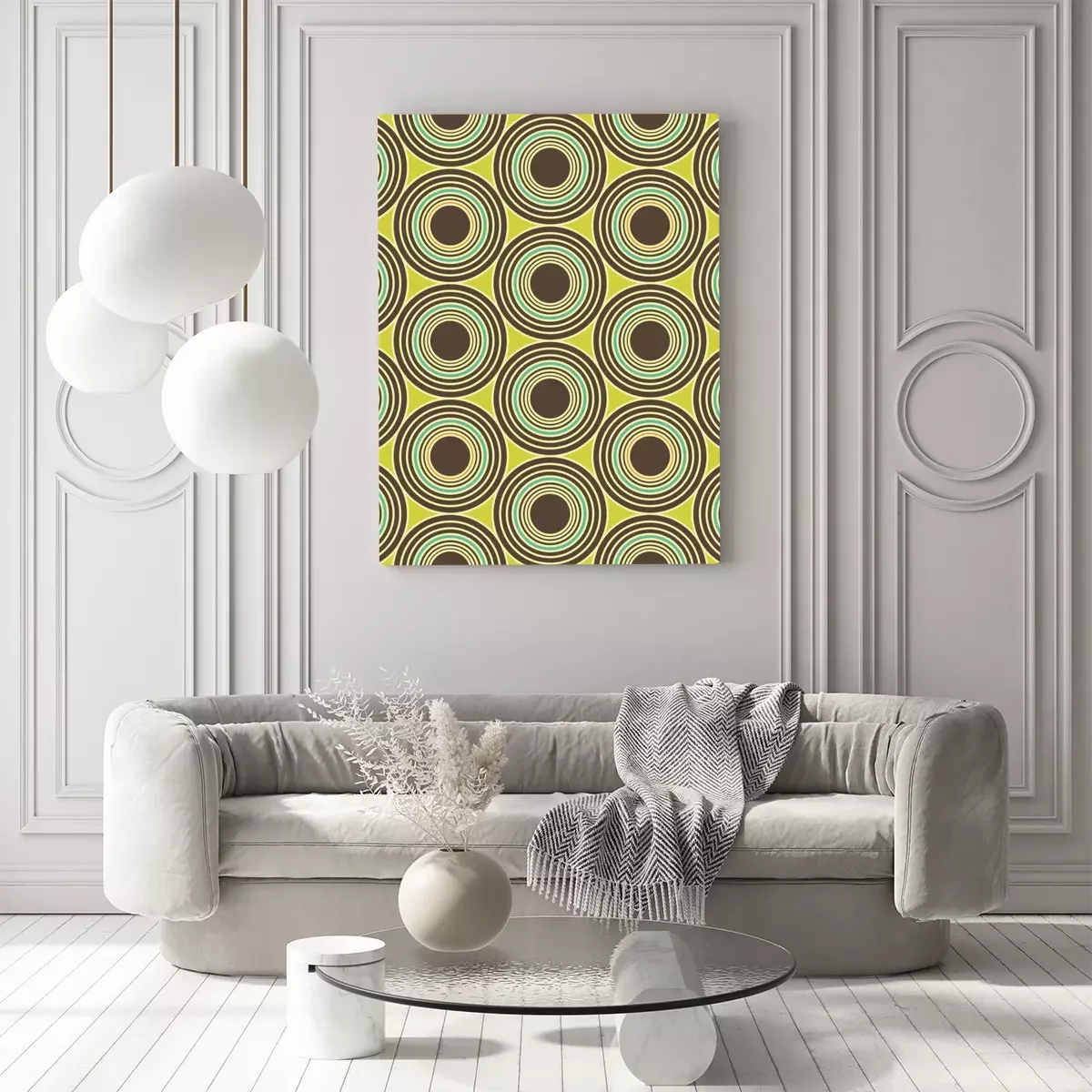 Canvas: Vector moderne naadloze kleurrijke meetkunde cirkels patroon, kleur abstract geometrische achtergrond, trendy veelkleurige print, retro textuur, hipster fashion design