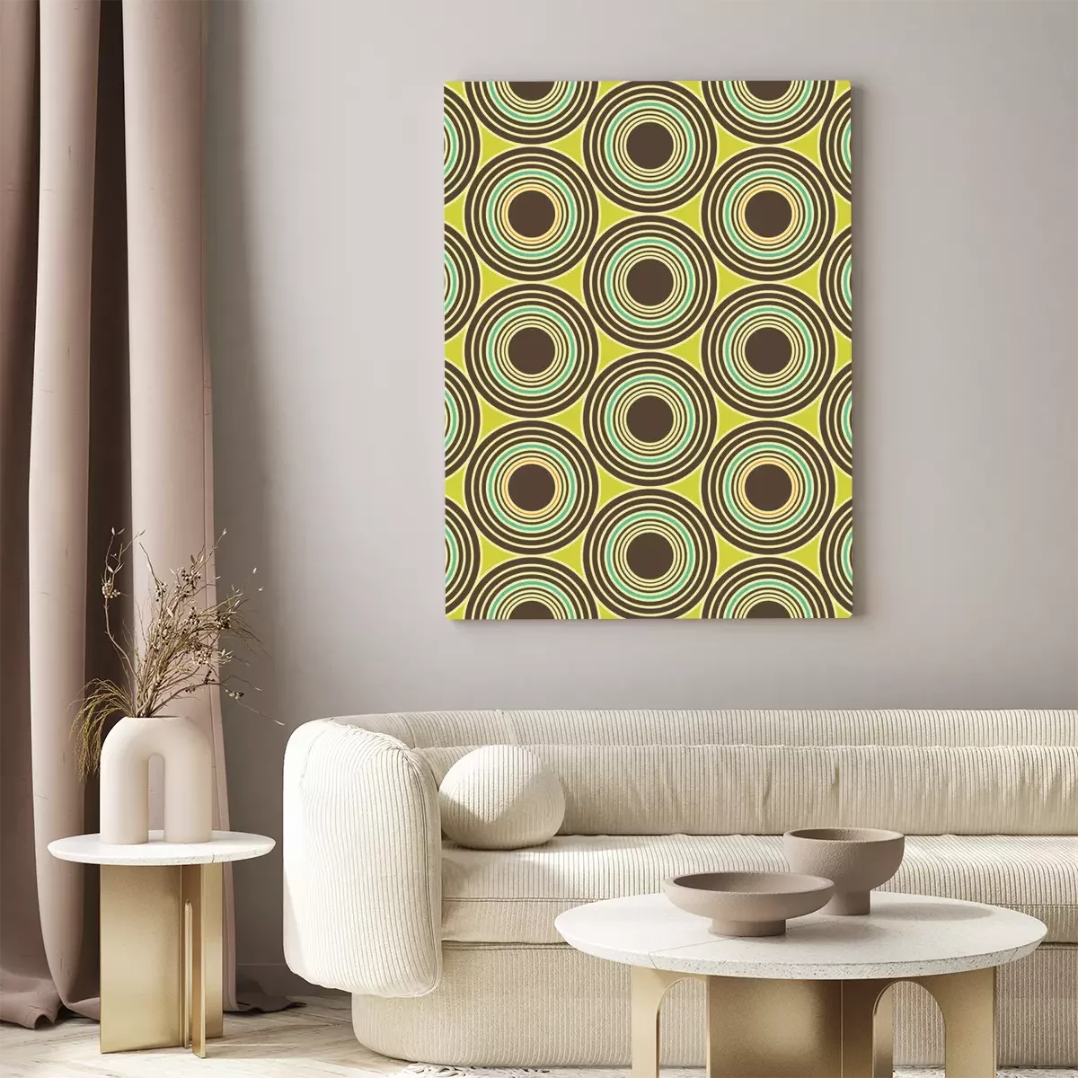 Canvas Vector moderne naadloze kleurrijke meetkunde cirkels patroon, kleur abstract geometrische achtergrond, trendy veelkleurige print, retro textuur, hipster fashion design