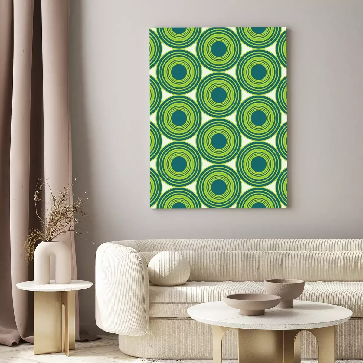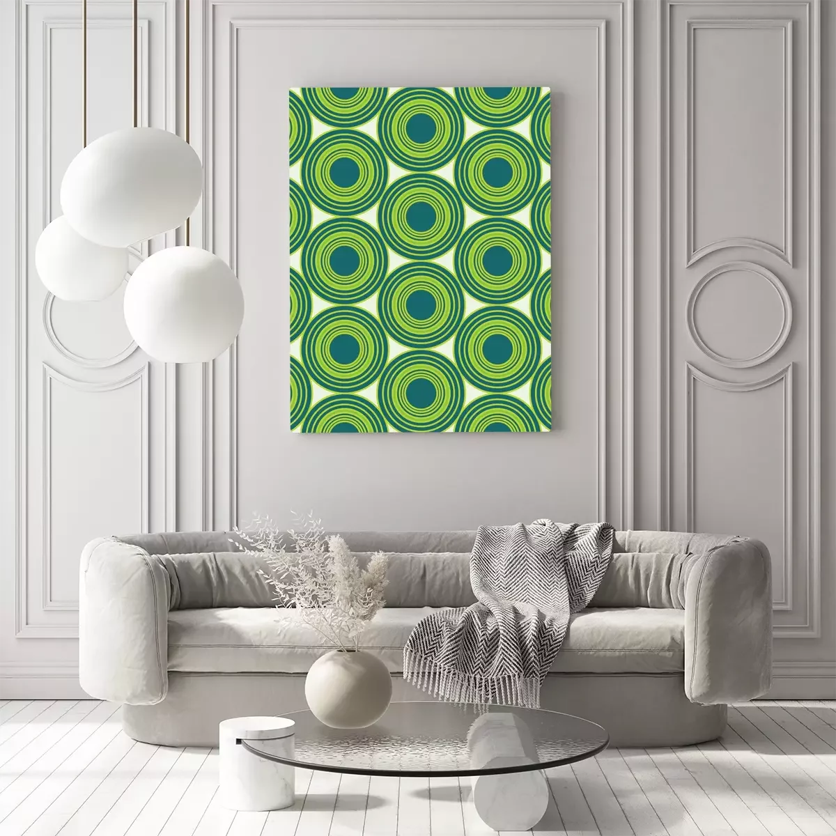 Canvas: Vector moderne naadloze kleurrijke meetkunde cirkels patroon, kleur groen abstract geometrische achtergrond, trendy veelkleurige print, retro textuur, hipster fashion design
