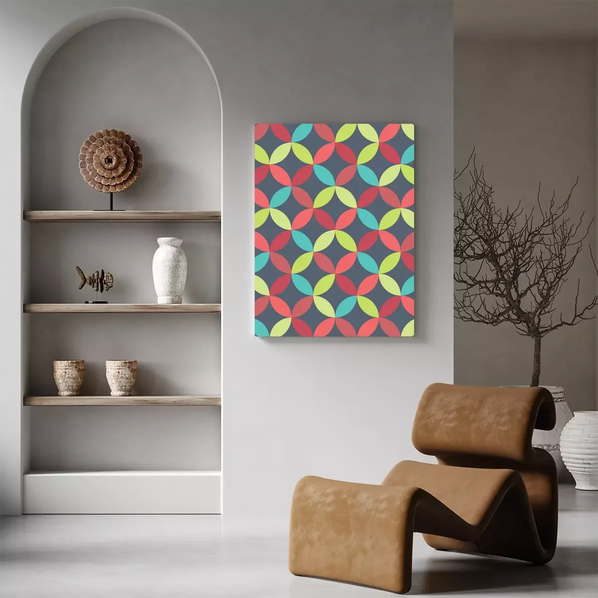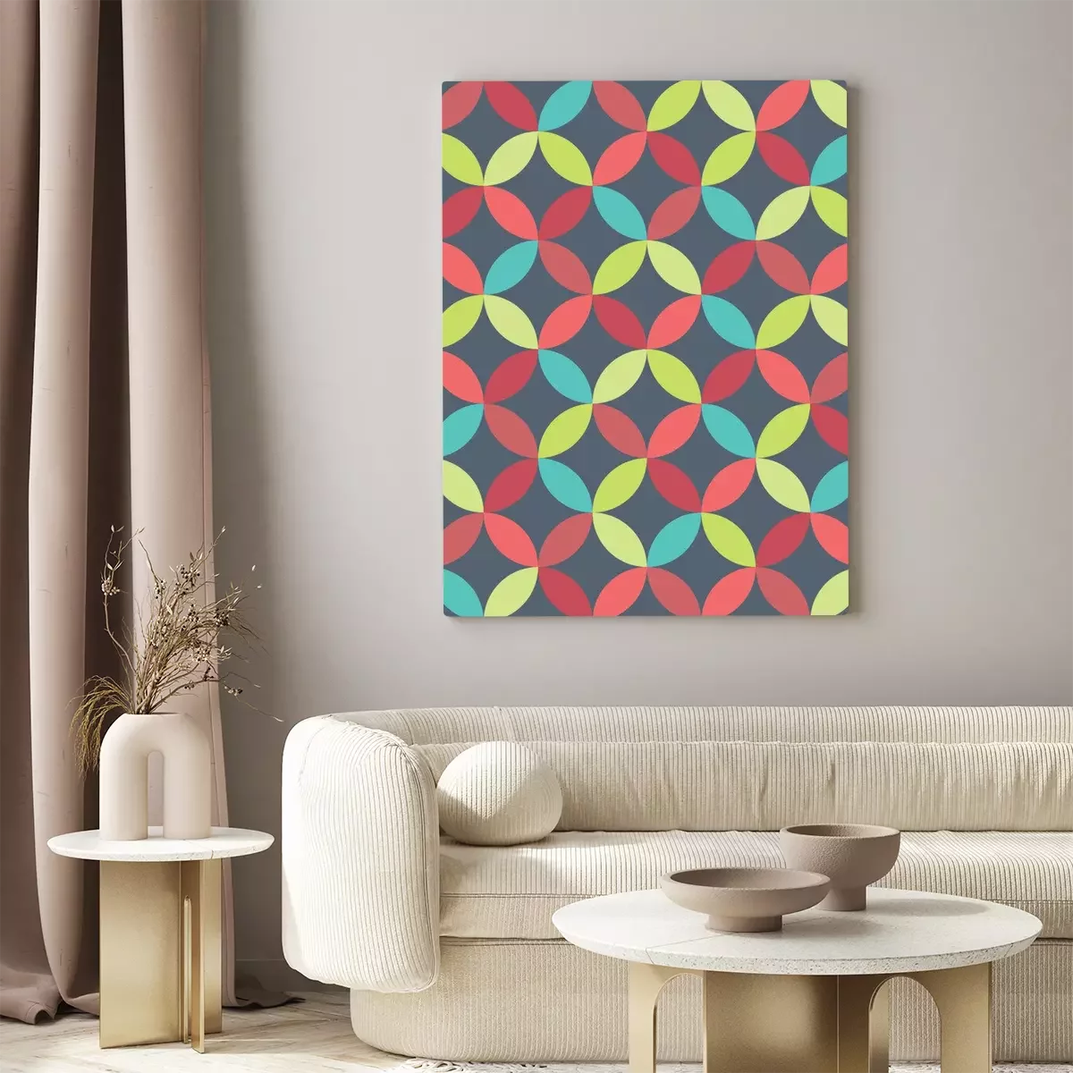 Canvas Vector moderne naadloze kleurrijke meetkunde overlappende cirkels patroon, kleur abstract geometrische achtergrond, kussen veelkleurige print, retro textuur, hipster fashion design
