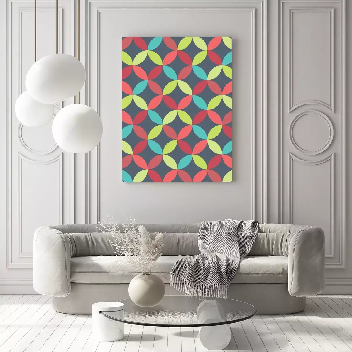 Canvas: Vector moderne naadloze kleurrijke meetkunde overlappende cirkels patroon, kleur abstract geometrische achtergrond, kussen veelkleurige print, retro textuur, hipster fashion design
