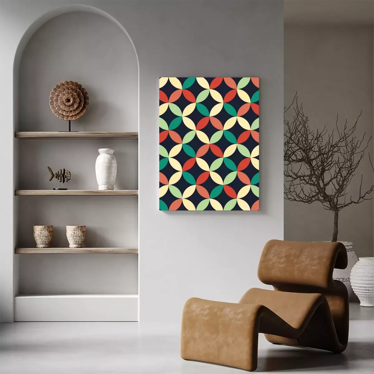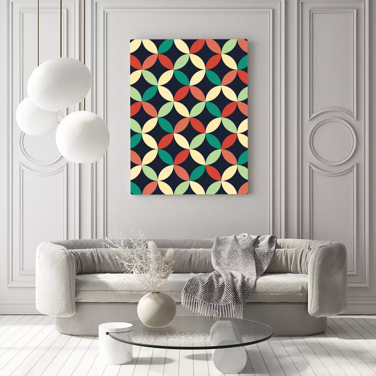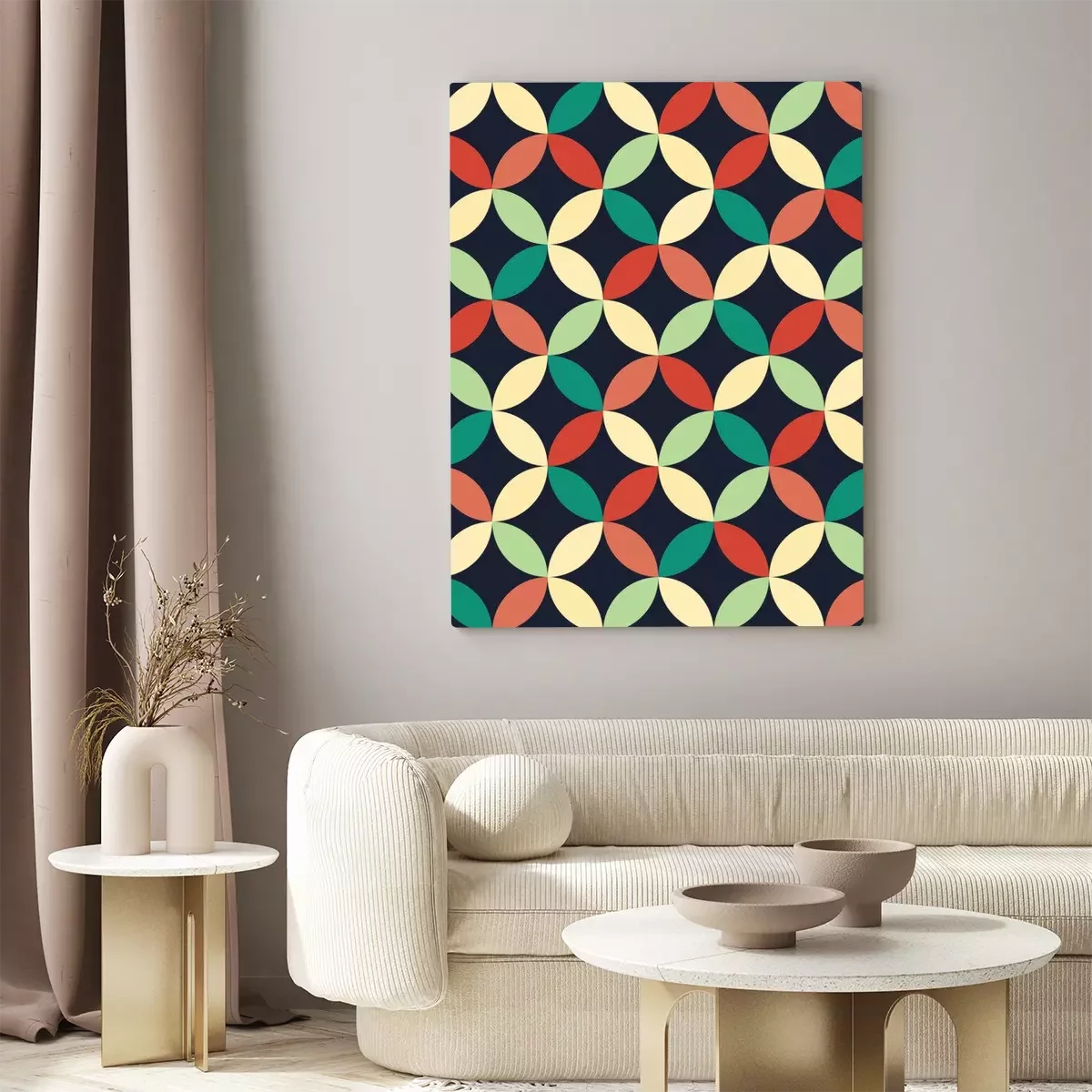 Canvas: Vector moderne naadloze kleurrijke meetkunde overlappende cirkels patroon, kleur abstract geometrische achtergrond, kussen veelkleurige print, retro textuur, hipster fashion design