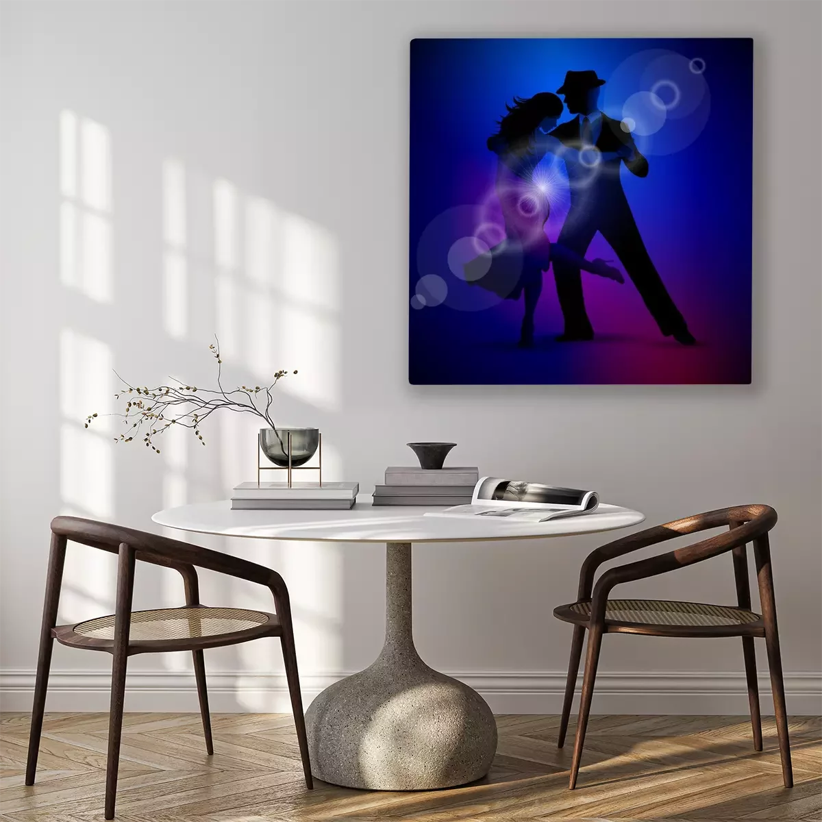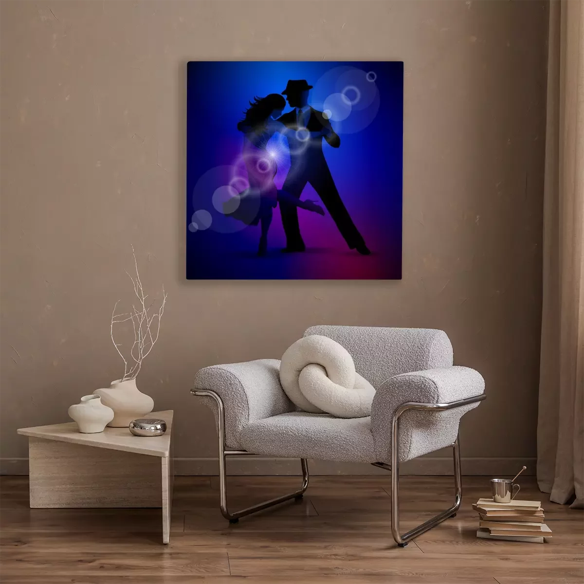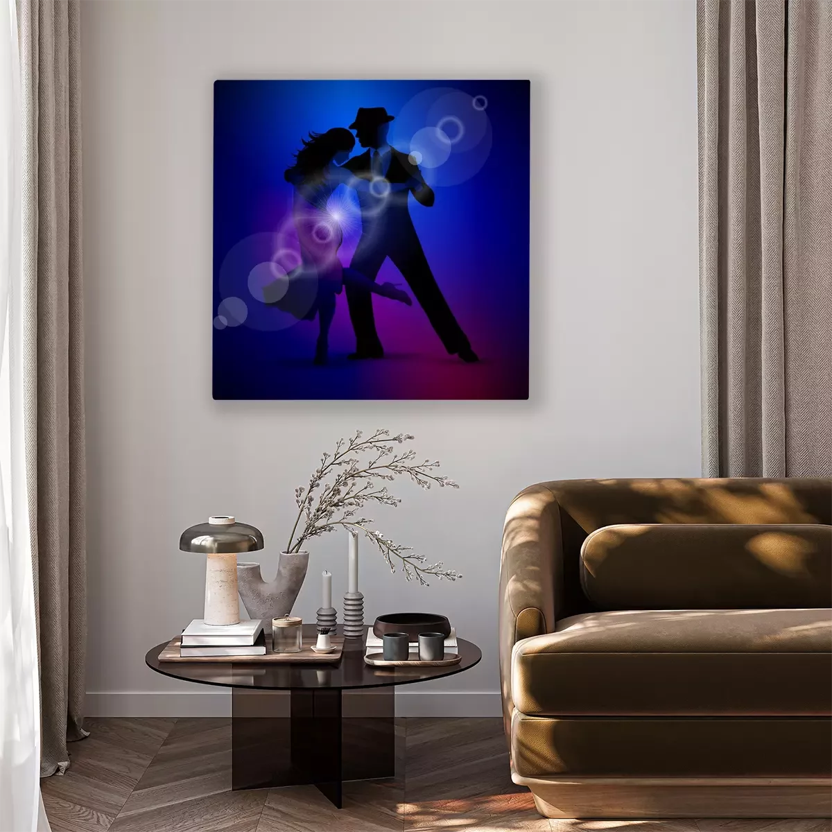 Canvas: Vector ontwerp met paar tango dansen op een donkere achtergrond.