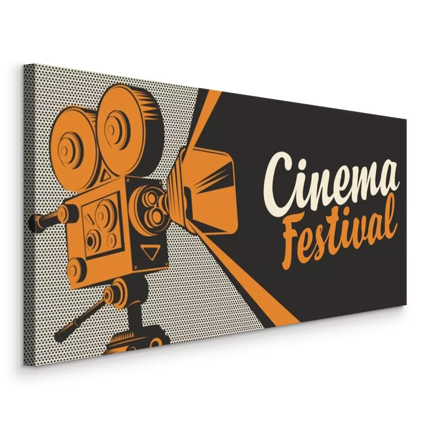 Canvas: Vector poster for cinema festival with old fashioned movie projector or camera. Retro movie background with calligraphic inscription. Can be used for flyer, banner, poster, web page, background
