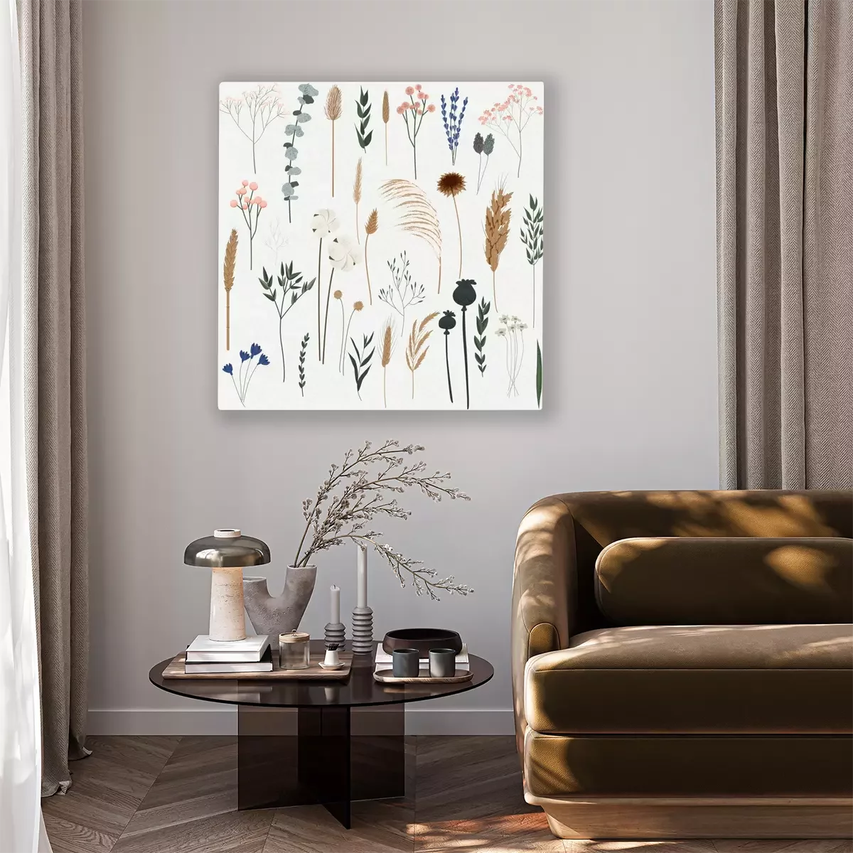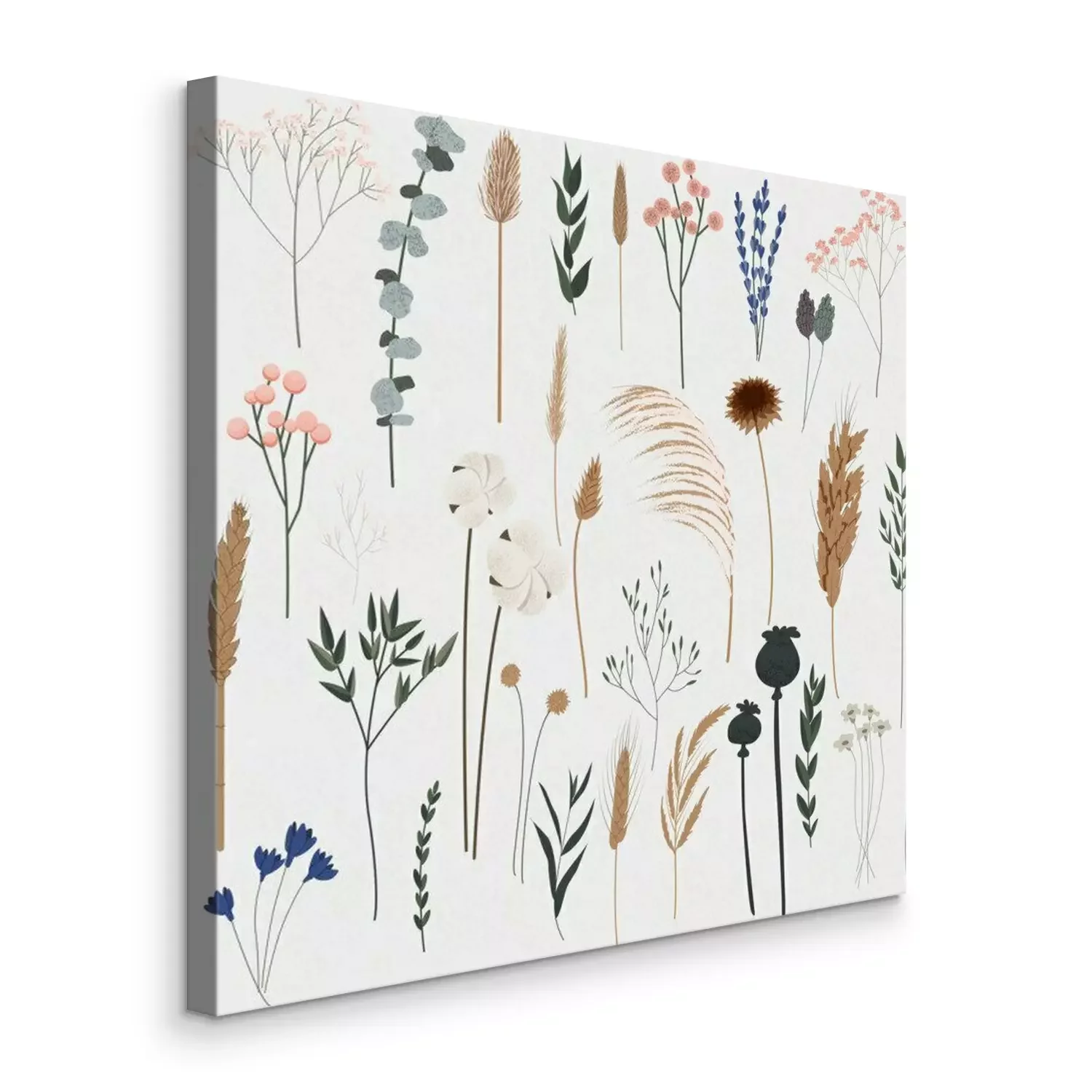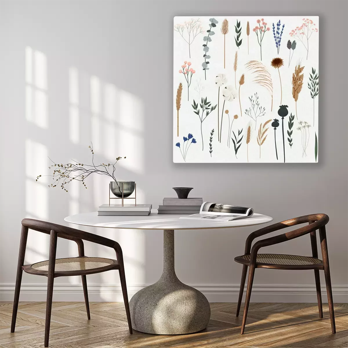Canvas: Vector set of boho plants. Beautiful hand drawn wild grass and flowers. Collection of floral elements: pampas grass, poppy heads, lavander, cotton and other. Stylish flat elements for your design