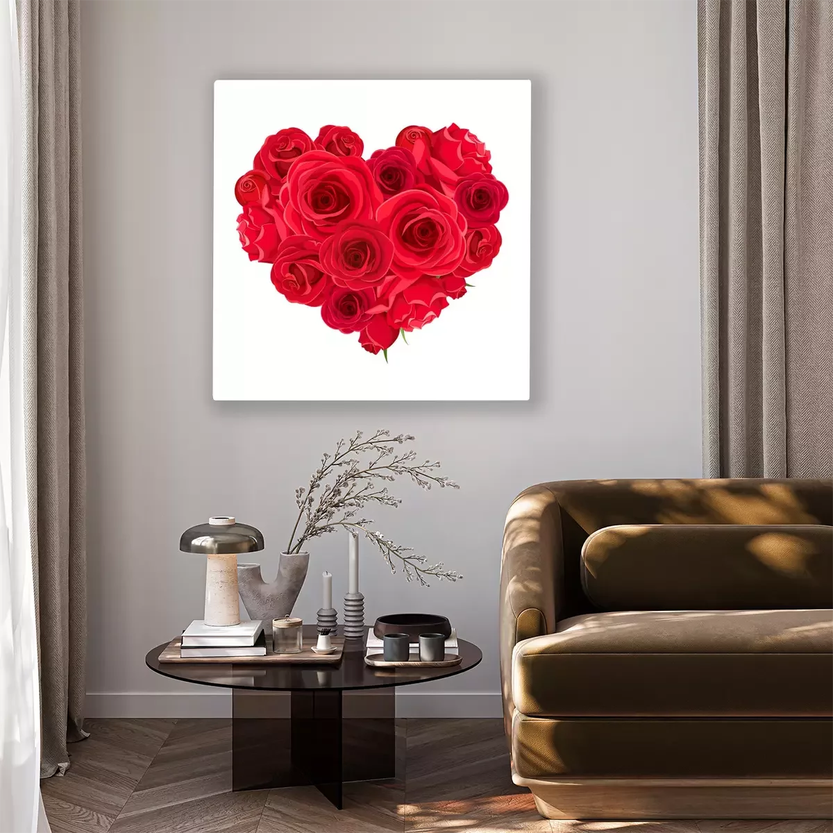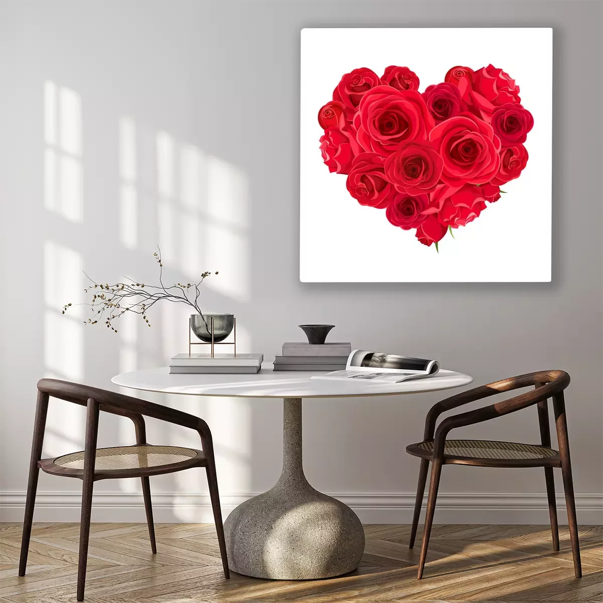 Canvas: Vector Valentine’s day heart of red roses isolated on a white background.