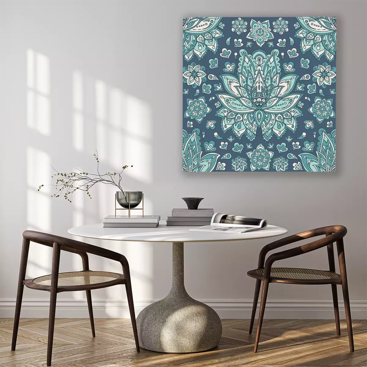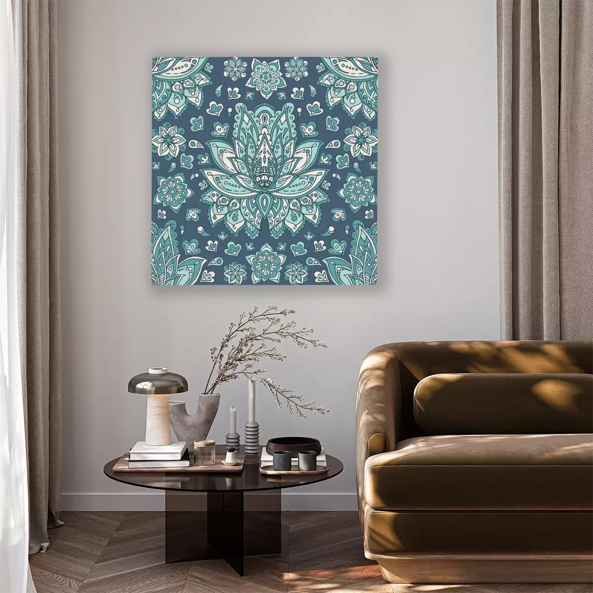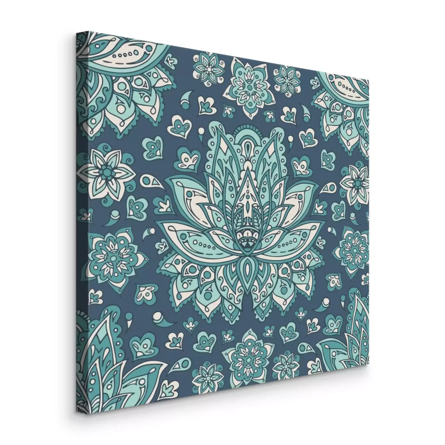 Canvas Vectorillustratie Indisch hand getrokken hamsasymbool. Uitstekend bloemen Naadloos patroon met fantasiebloemen.