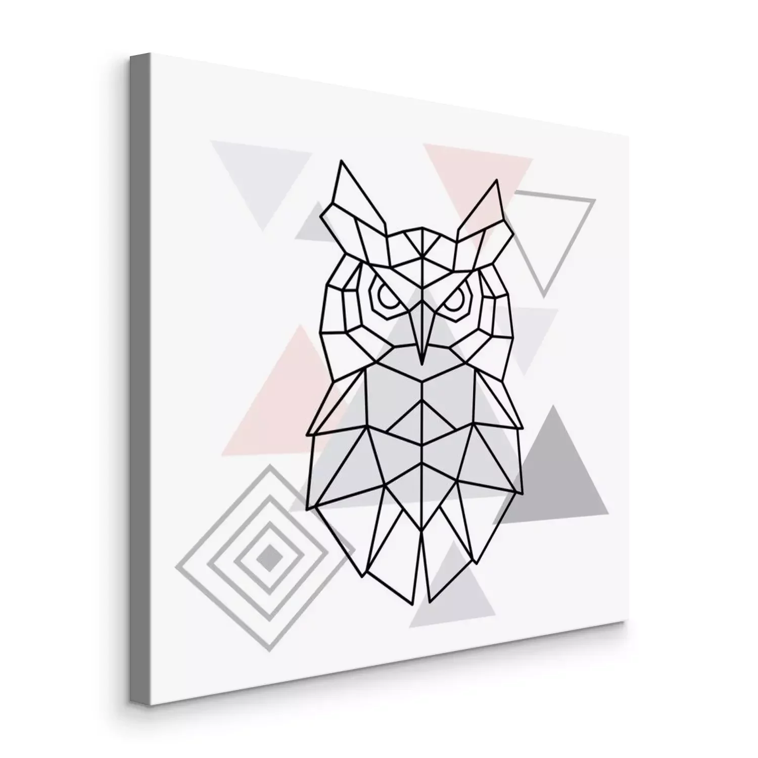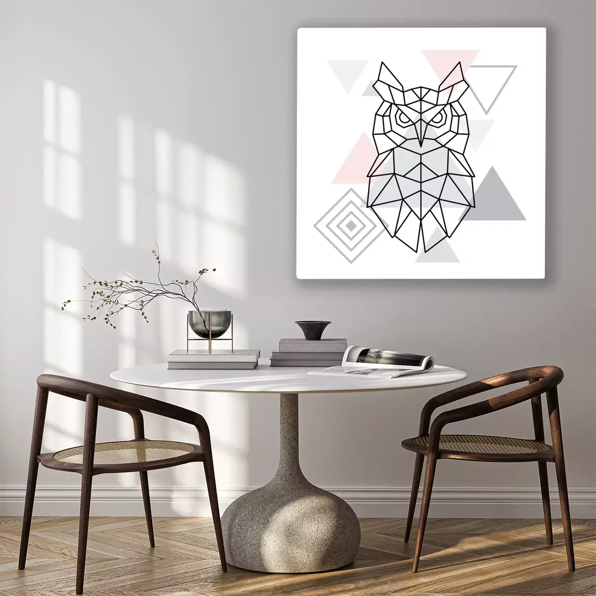 Canvas: Veelhoekige uil op minimalistische driehoek achtergrond. Geometrische poster. Vector ontwerpsjabloon.