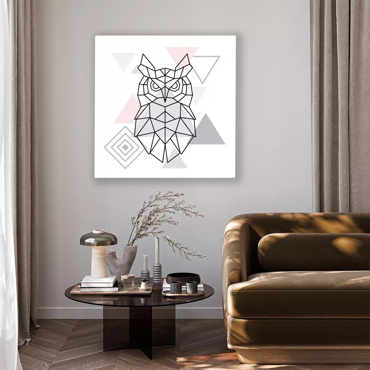 Canvas Veelhoekige uil op minimalistische driehoek achtergrond. Geometrische poster. Vector ontwerpsjabloon.