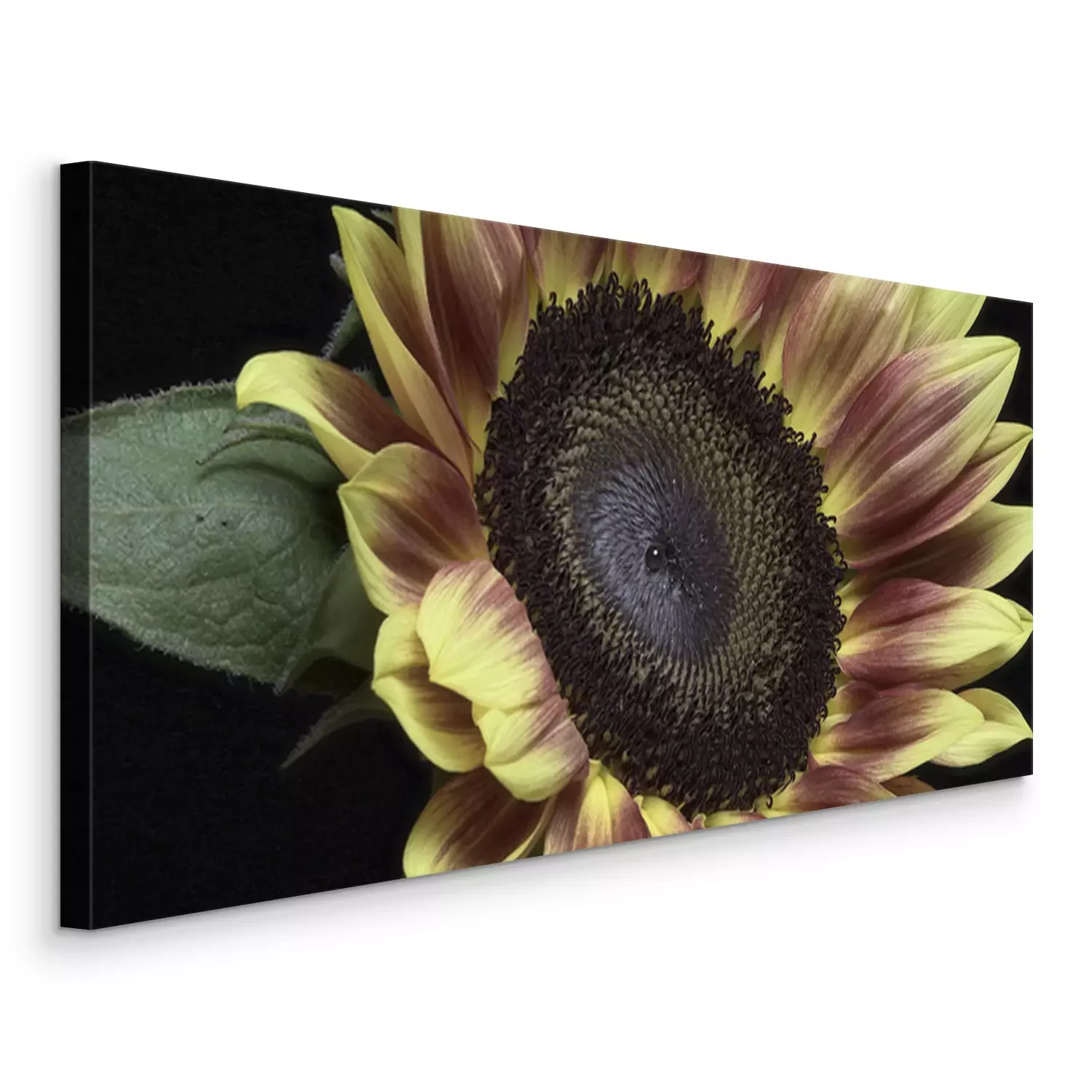 Canvas: Veelkleurige zonnebloem op een zwarte achtergrond