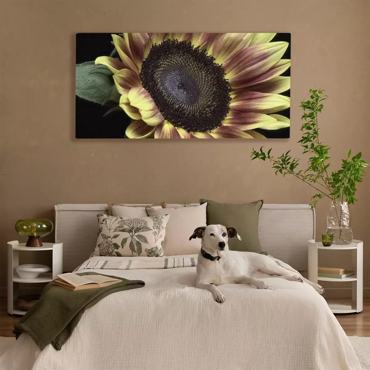 Canvas Veelkleurige zonnebloem op een zwarte achtergrond