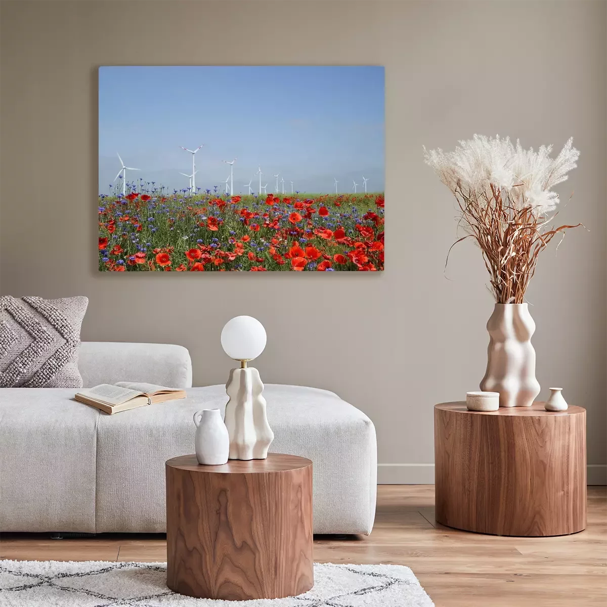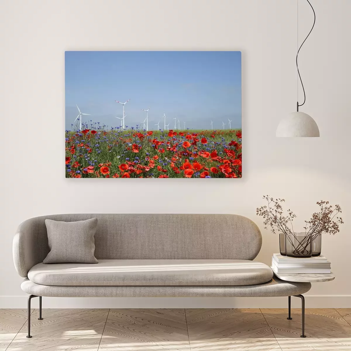 Canvas Veld met klaproos en korenbloemen voor windturbines