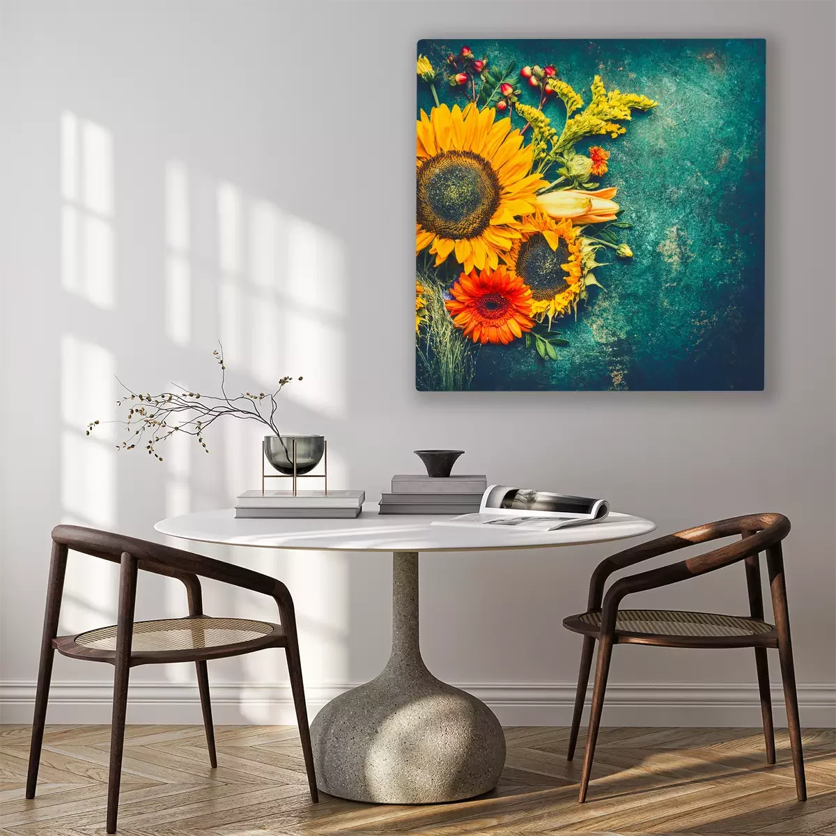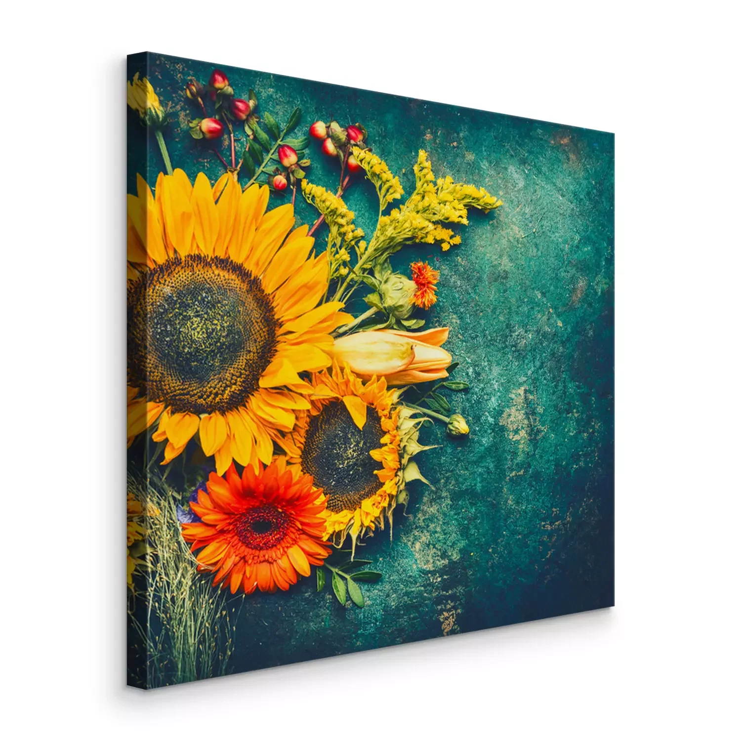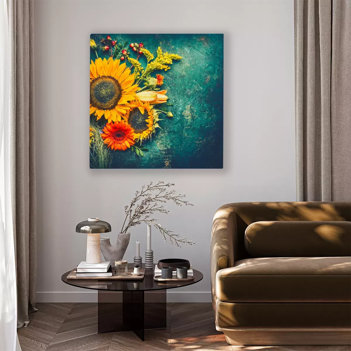 Canvas: Veld zonnebloemen op een groene achtergrond