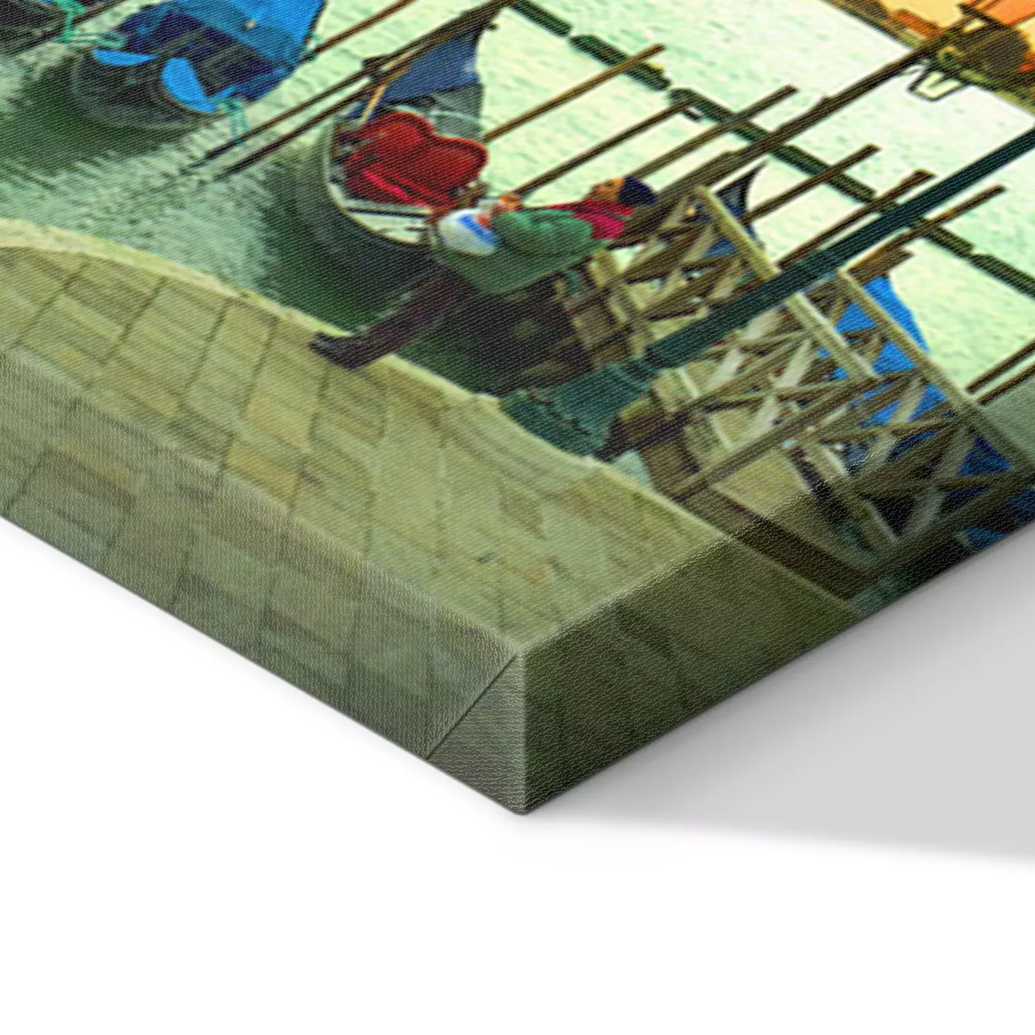 De print wordt aangebracht op hoogwaardig canvas dat op een schildersweefgetouw (spieraam) wordt gespannen. Omdat de print de zijranden bedekt, hoeft het ontwerp niet met een extra kader te worden omlijst. Wij raden ook composities aan die uit meerdere foto's bestaan en zo een coherente compositie vormen.