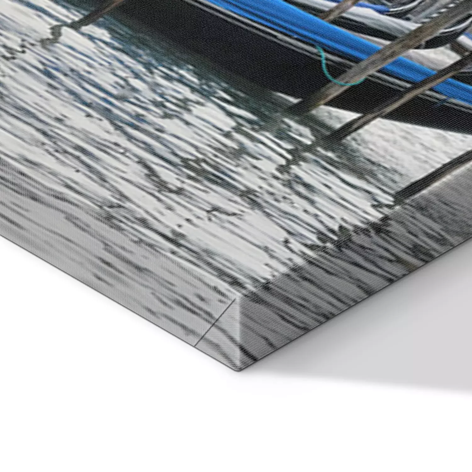 De print wordt aangebracht op hoogwaardig canvas dat op een schildersweefgetouw (spieraam) wordt gespannen. Omdat de print de zijranden bedekt, hoeft het ontwerp niet met een extra kader te worden omlijst. Wij raden ook composities aan die uit meerdere foto's bestaan en zo een coherente compositie vormen.