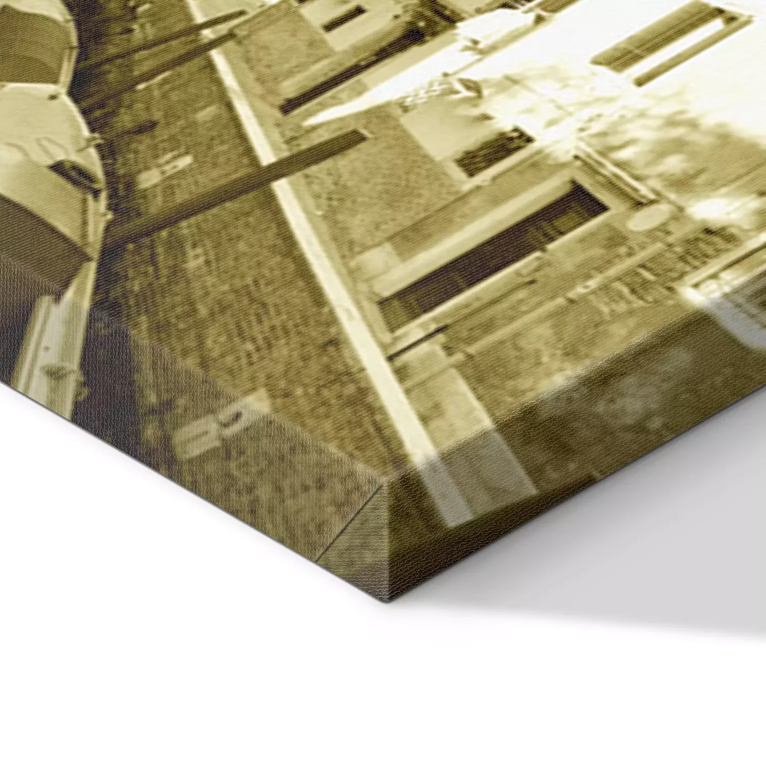 De print wordt aangebracht op hoogwaardig canvas dat op een schildersweefgetouw (spieraam) wordt gespannen. Omdat de print de zijranden bedekt, hoeft het ontwerp niet met een extra kader te worden omlijst. Wij raden ook composities aan die uit meerdere foto's bestaan en zo een coherente compositie vormen.