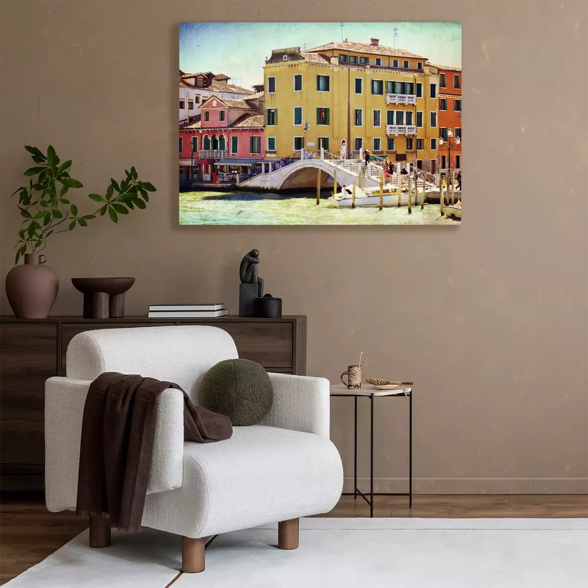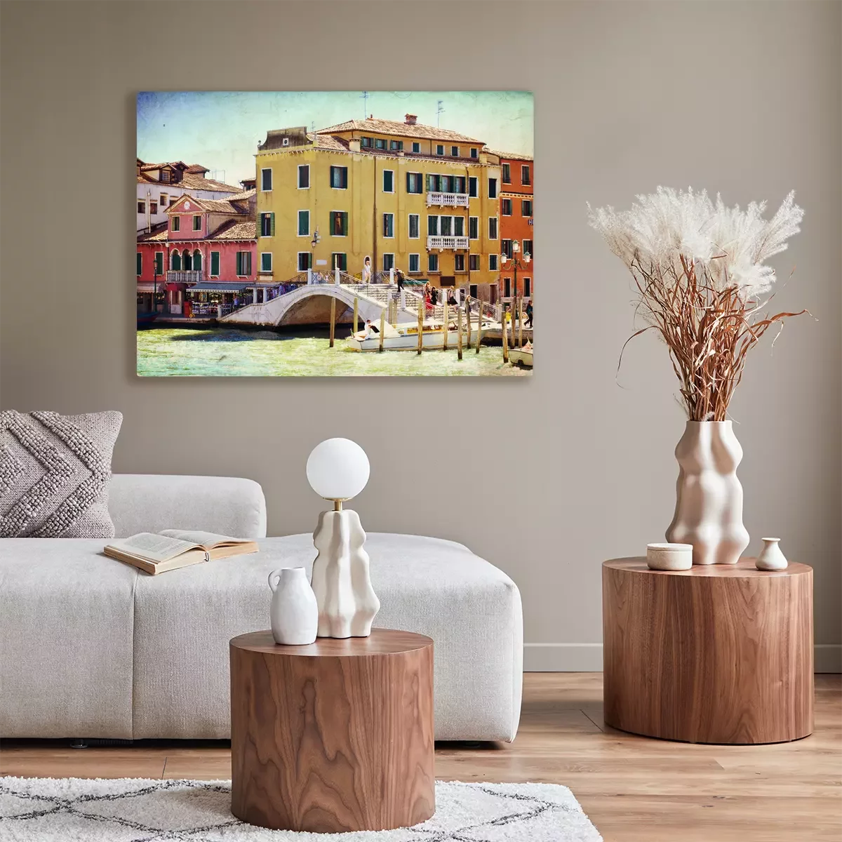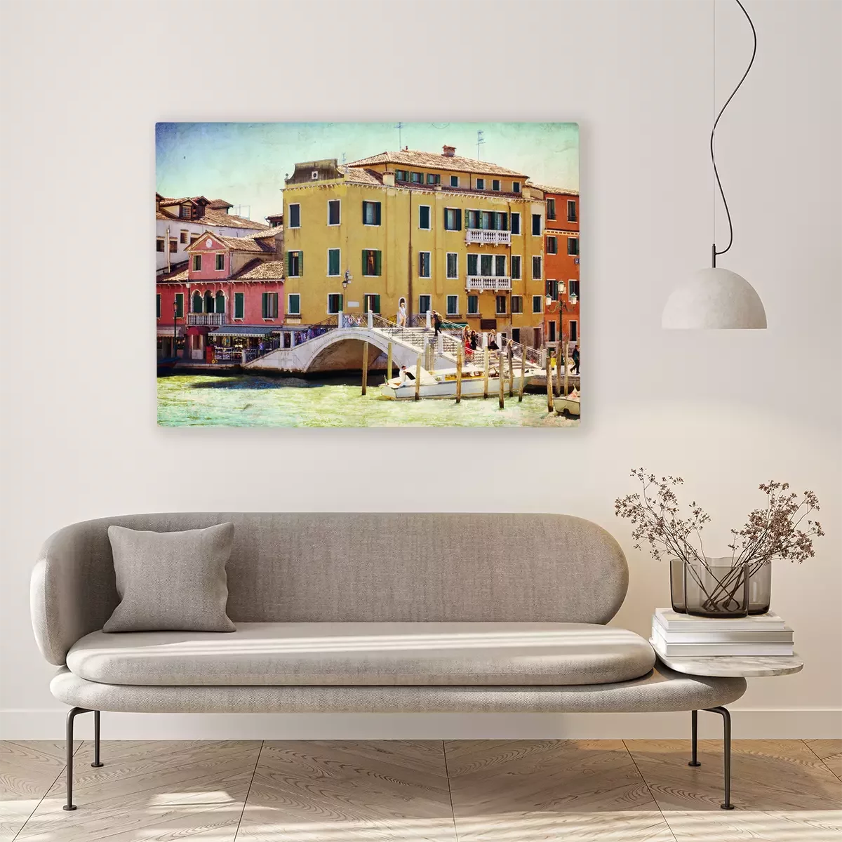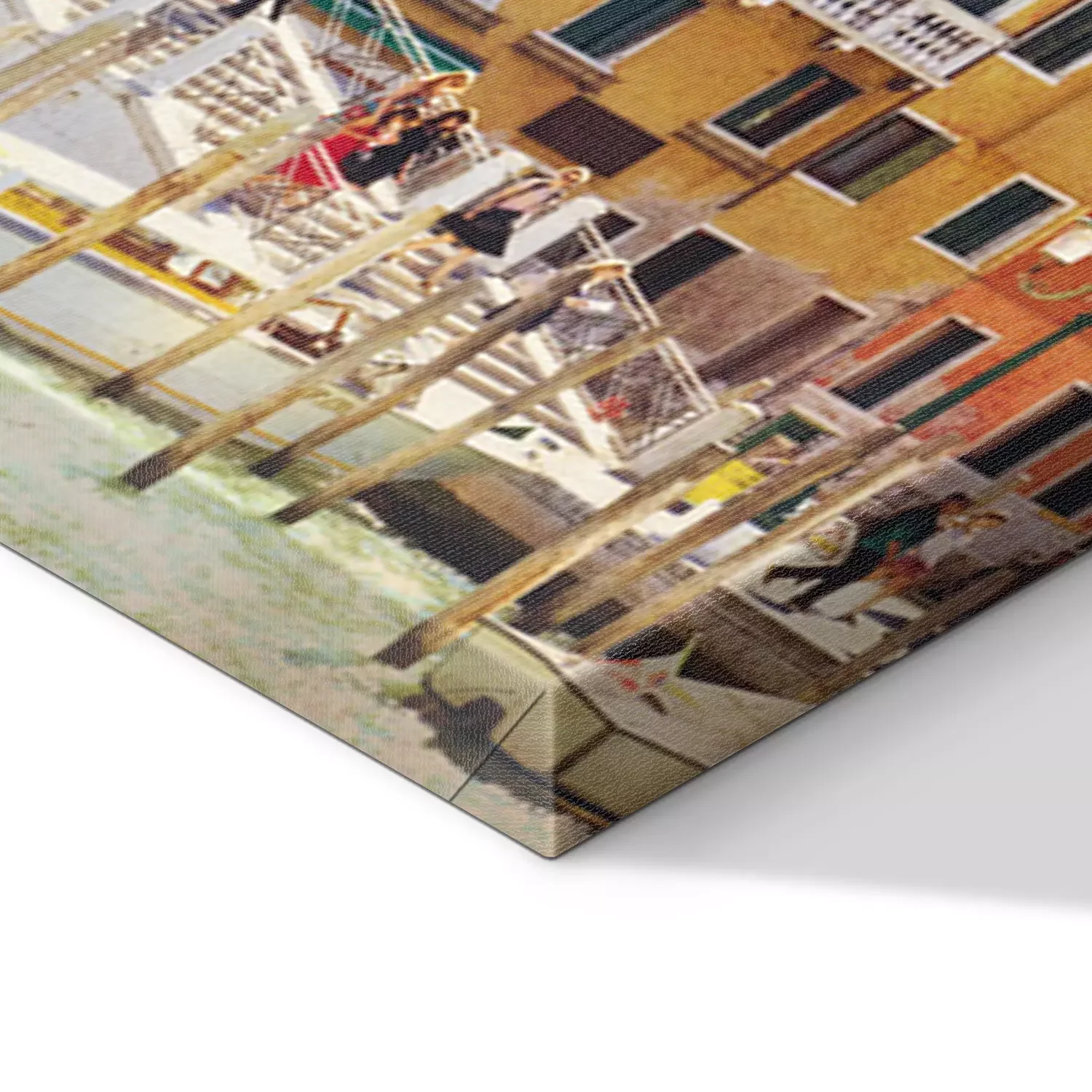 De print wordt aangebracht op hoogwaardig canvas dat op een schildersweefgetouw (spieraam) wordt gespannen. Omdat de print de zijranden bedekt, hoeft het ontwerp niet met een extra kader te worden omlijst. Wij raden ook composities aan die uit meerdere foto's bestaan en zo een coherente compositie vormen.