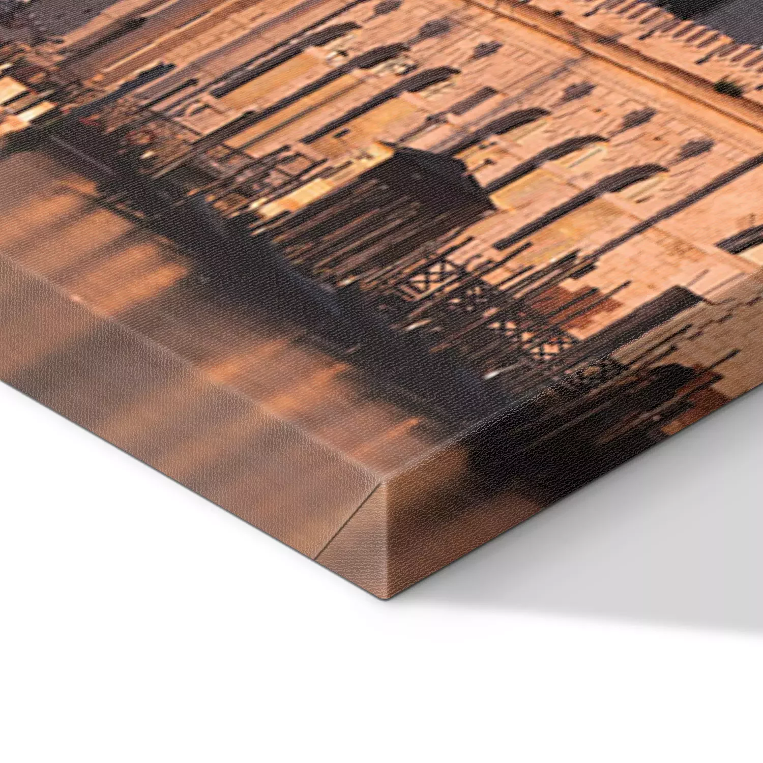 De print wordt aangebracht op hoogwaardig canvas dat op een schildersweefgetouw (spieraam) wordt gespannen. Omdat de print de zijranden bedekt, hoeft het ontwerp niet met een extra kader te worden omlijst. Wij raden ook composities aan die uit meerdere foto's bestaan en zo een coherente compositie vormen.
